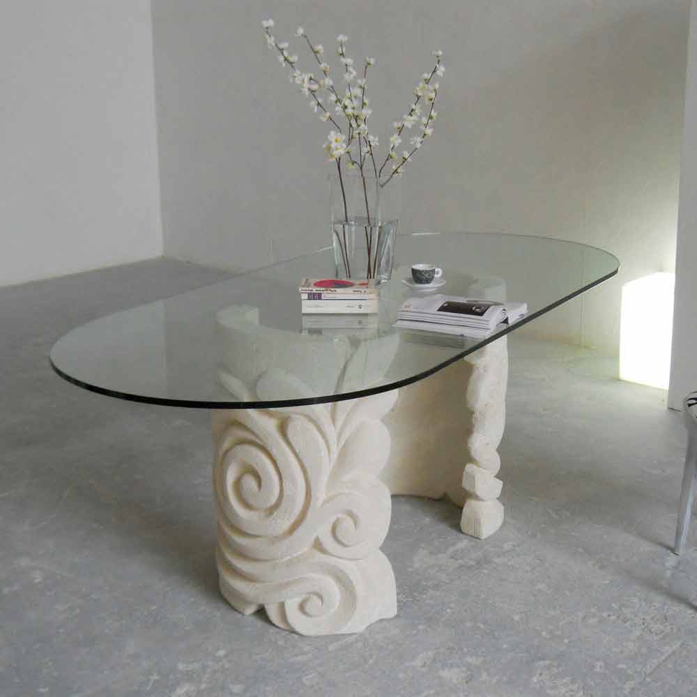 طاولة طعام بتصميم كلاسيكي مع قاعدة من الحجر الطبيعي من عدن وسطح من الكريستال طاولة طعام "آدن" مصنوعة بالكامل في إيطاليا. قاعدتها مصنوعة من حجر فيتشنزا الطبيعي، ونُحتت يدويًا من كتلة الحجر الأصلية. سطح الطاولة مصنوع من كريستال عائم (سمكه 15 مم) موضوع على القاعدة. يتكون حجر فيتشنزا الطبيعي في الغالب من كربونات الكالسيوم، والذي نشأ من انهيار الشعاب المرجانية واستقرار الكائنات البحرية، مثل الأصداف والقشريات والطحالب، في قاع البحر. يأتي الجدول عدن مع شهادة الأصالة المرقمة.