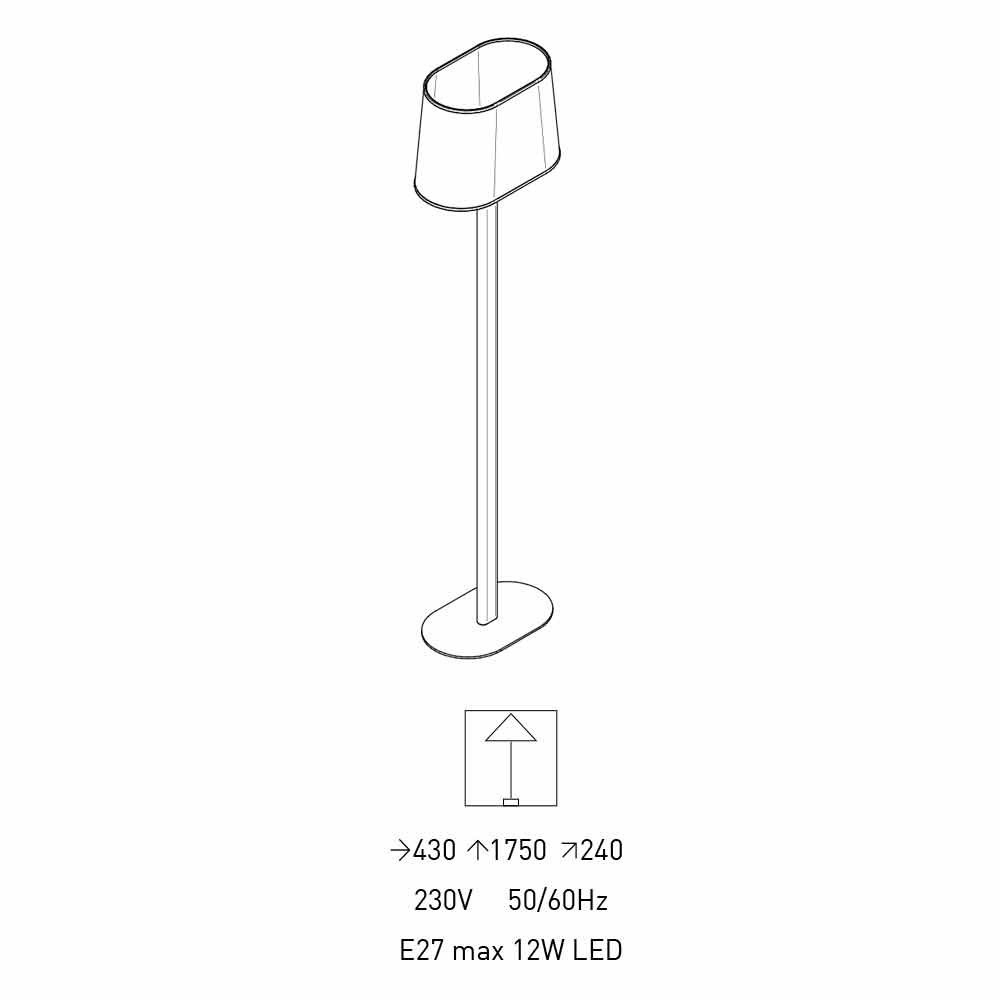 المصباح/ المقبس: 230 فولت 50 / 60 هرتز E27 بحد أقصى 12 وات LED