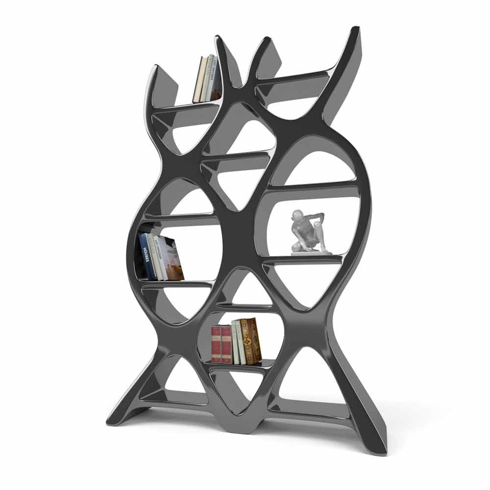 ما وراء خزانة الكتب، منحوتة مستوحاة من الحمض النووي، مصدر الحياة والمعرفة. خطوطها الناعمة والمتعرجة، إلى جانب تأثيرها الخلاب، تجعل خزانة الكتب DNA قطعة أثاث مميزة في المنزل. كما أن أشكالها الفريدة تجعلها مثالية للبيئات المخصصة للمقاهي أو مكتبات القهوة. هيكل ذو سطح صلب، متوفر بألوان مختلفة: أسود (RAL9005)، أحمر ياقوتي (RAL3003)، أو أبيض لؤلؤي (RAL1013).