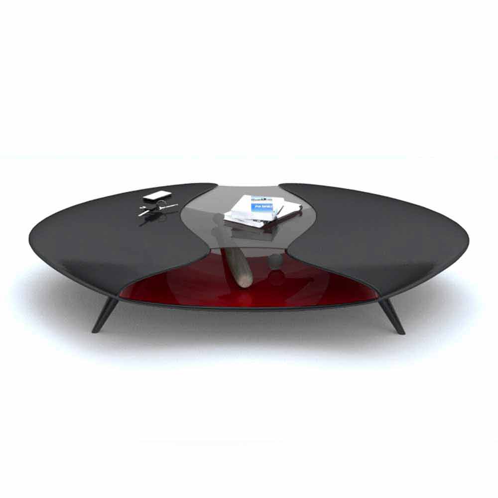 الهندسة الإهليلجية. المواد: سطح صلب؛ طاولة قهوة بأشكال فريدة ومستقبلية. يتميز بتصميم دائري وممتد على طول محوره العرضي في آنٍ واحد. ويتألف من أشكال هندسية بيضاوية، تبرز ليس فقط من خلال شكله، بل أيضًا من خلال فتحتي الوصول إلى الرف الوسطي المزود به، والذي يُستخدم أيضًا لاحتواء أو تخزين حتى الأشياء الكبيرة. يُظهر سطحًا علويًا مصنوعًا من مادتين: سطح صلب للجزء الهيكلي، وزجاج بلوري مُقسّى. تدعمه المادة الأولى، التي يُمكن تثبيتها على الهيكل أو دعمها ببساطة عن طريق التشابك. يرتكز المكمل على أربعة أقدام مدببة، مدمجة دائمًا في الهيكل، مما يجعله يبدو أكثر مثل الصحن الطائر، ومن هنا جاء اسم Alien. طلاء لامع. متوفر بألوان مختلفة.