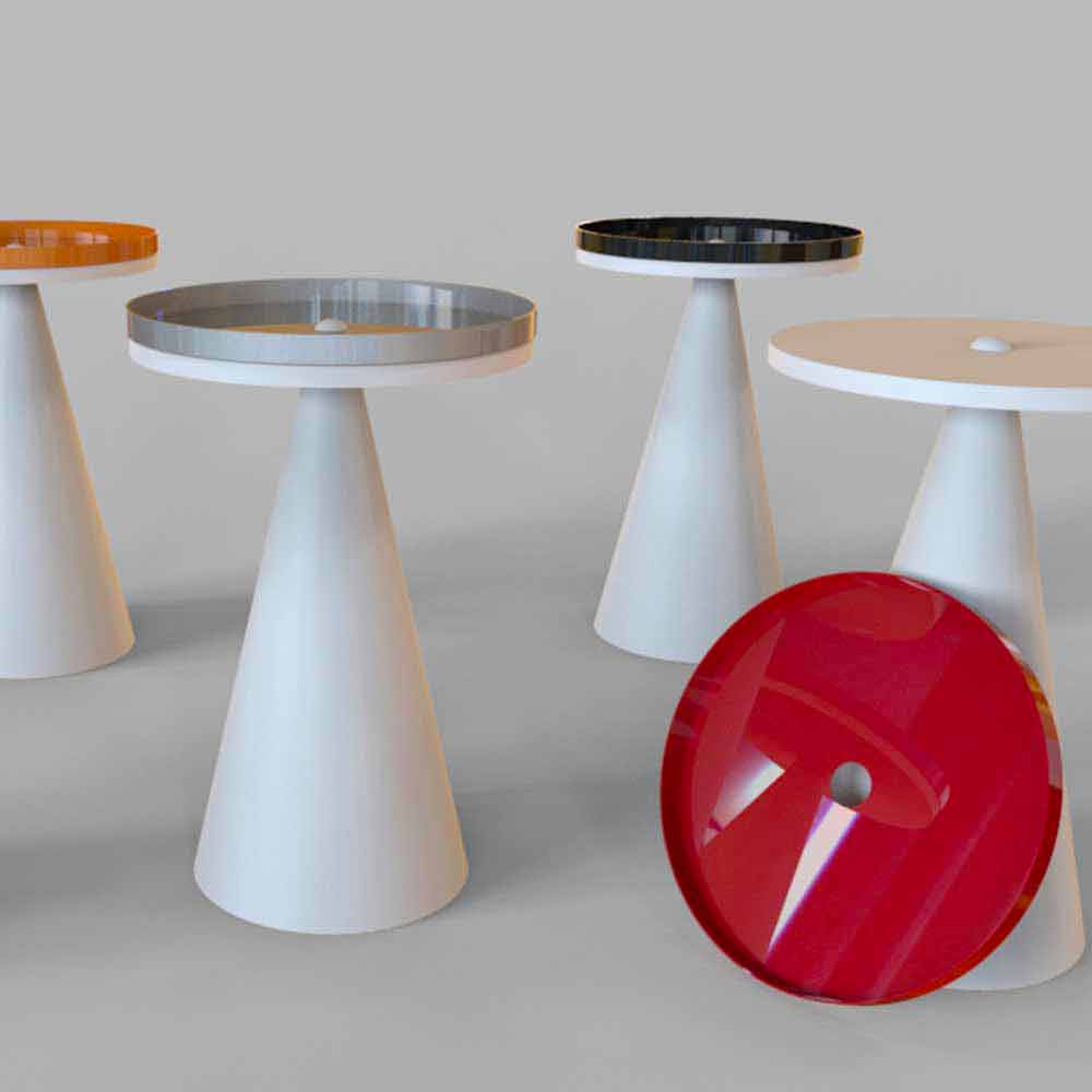 شخصية متعددة الاستخدامات. المواد: سطح صلب و صفائح معدنية. طاولة قهوة قادرة على إضفاء أجواء مميزة على مساحات المنزل المختلفة بشخصيتها القوية. القاعدة، المصنوعة من خشب أفاماتكس الأبيض غير اللامع، تتباين مع الجزء العلوي المصنوع من صفائح معدنية مطلية لامعة. يمكن استخدام هذا الأخير بشكل منفصل، مما يزيد من سهولة استخدام الصينية ويضمن في الوقت نفسه سطح دعم مزدوج. متوفر بألوان مختلفة.