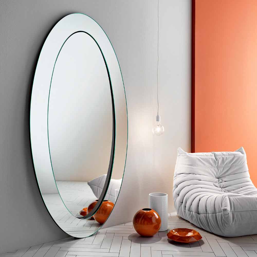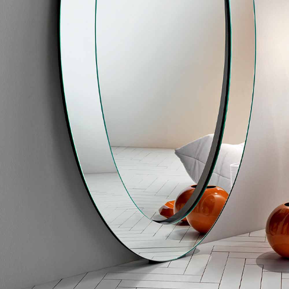 مرآة حديثة قائمة بذاتها على شكل بيضاوي مع إطار مائل، مصنوعة يدويًا في إيطاليا.