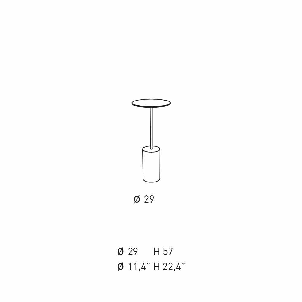 تتوفر هذه الطاولة القهوة بثلاثة أحجام مختلفة ، ويمكنها توفير البيئة بشكل فردي أو بصحبة متغيراتها، للحصول على تأثير أكثر معاصرة ولونيًا. يتميز تصميمه بقرص فولاذي مثبت على أنبوب معدني، مدعوم بقاعدة أسطوانية. والنتيجة لعبة توازنات ممتعة وتناظرات مدهشة.