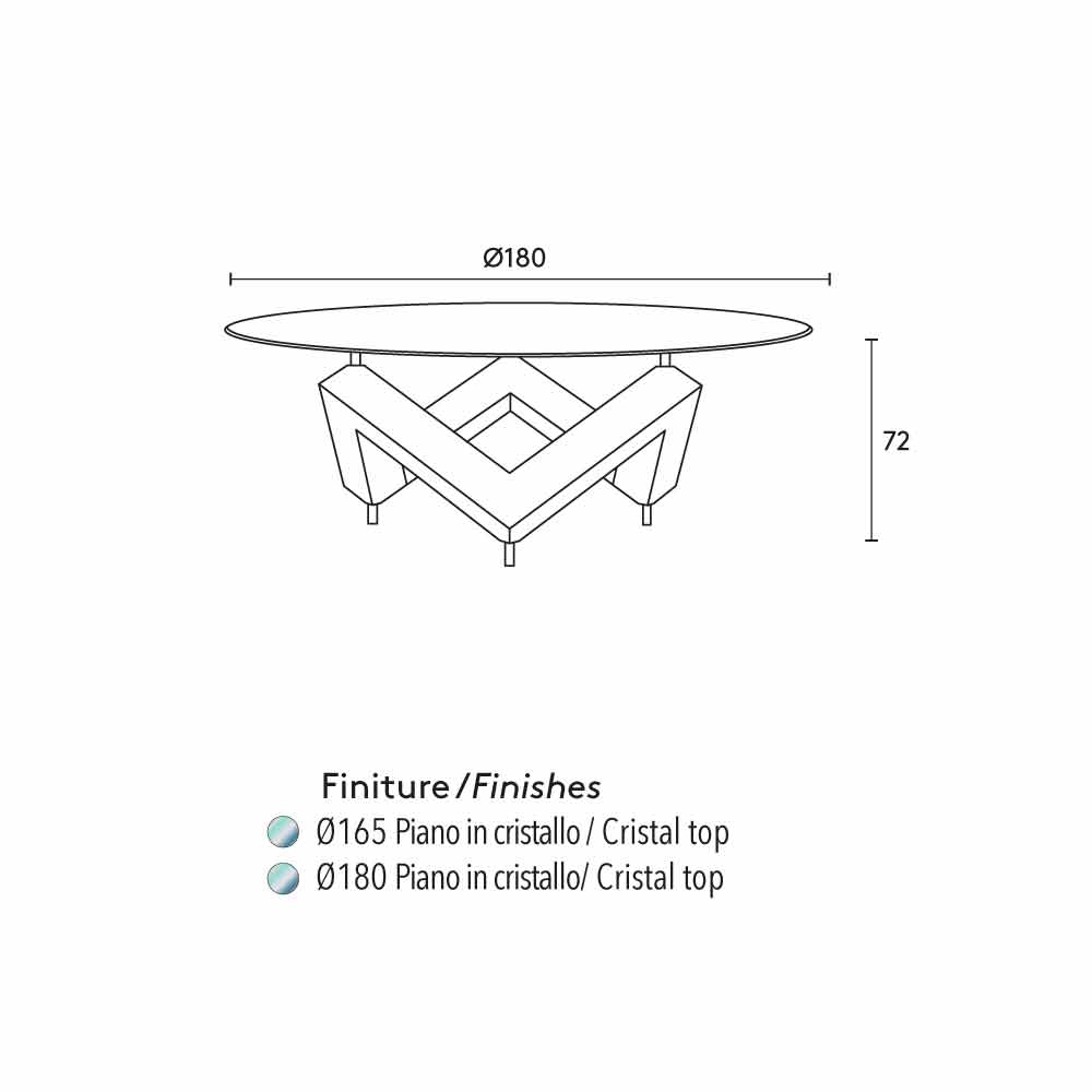 طاولة طعام خشبية دائرية مع سطح من كريستال باو، تصميم عصري، صنع في إيطاليا طاولة بتصميم مميز بقاعدة من خشب الدردار المصقول. سطحها من زجاج مقسّى شفاف فائق النقاء. طاولة باو متوفرة بحجمين مختلفين.