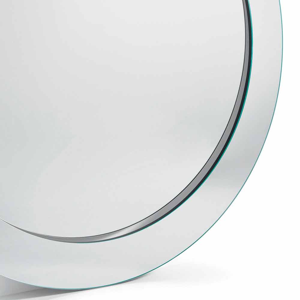 مرآة دائرية حديثة التصميم قائمة بذاتها بإطار مائل، مصنوعة يدويًا في إيطاليا.
