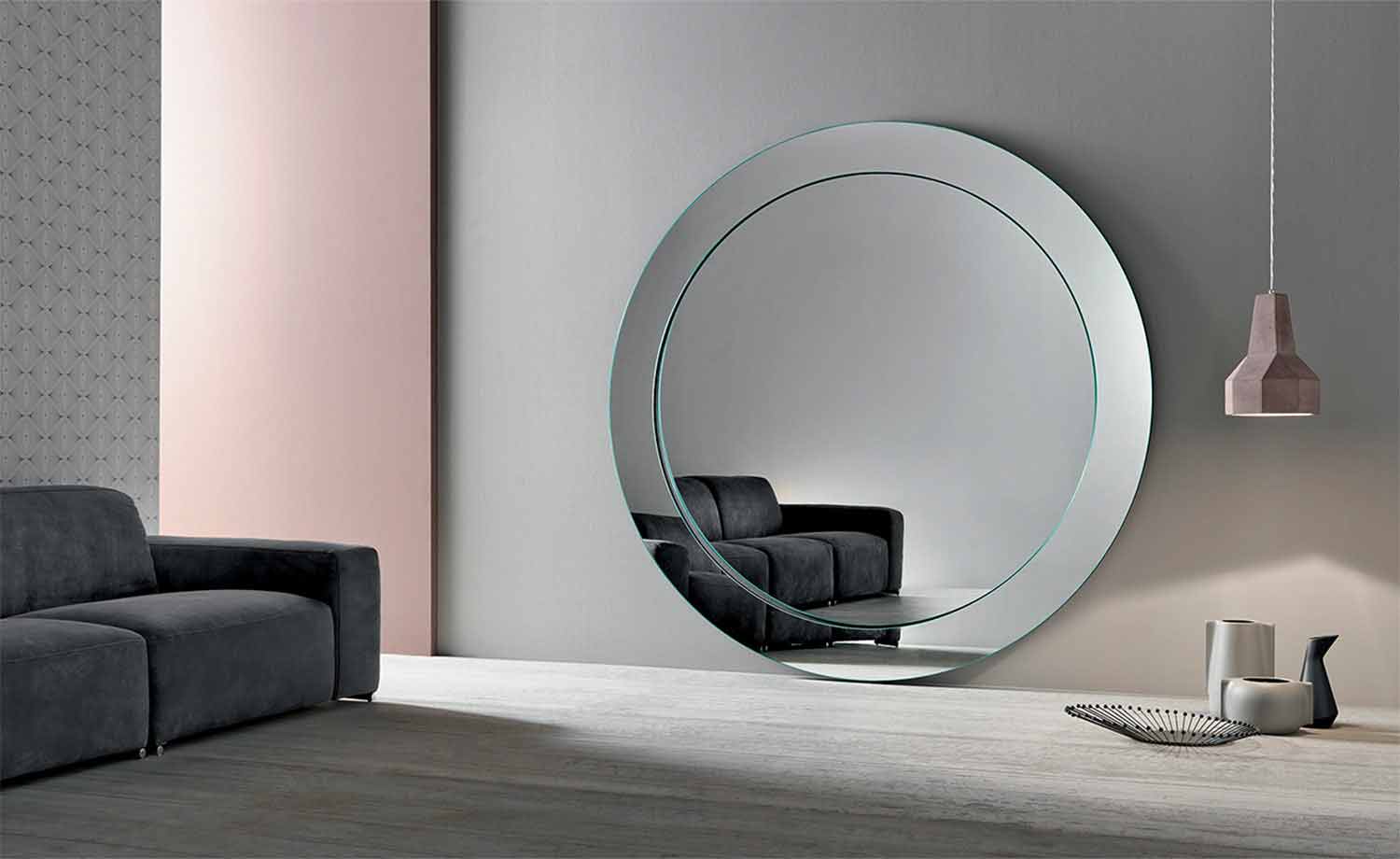 مرآة دائرية حديثة قائمة بذاتها بإطار مائل، صنعت في إيطاليا - سالامينا