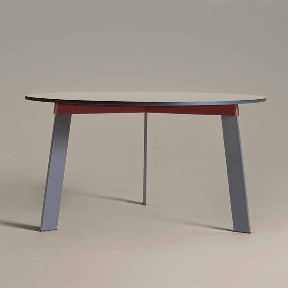 تتميز طاولة المعيشة المستديرة هذه بتصميمها الفريد الذي يشبه صليب القديس أندرو. تصميمها الأصلي والعملي يسمح بتركيب أرجلها المصنوعة أيضًا من الفولاذ، بنظام تجميع بسيط. تفاصيل تقنية وعملية تضفي عليها لمسة جمالية: براغي الوصلات واختيار الألوان المتناسقة أو المتباينة تُبرزها، مما يخلق طابعًا صناعيًا ومعاصرًا .