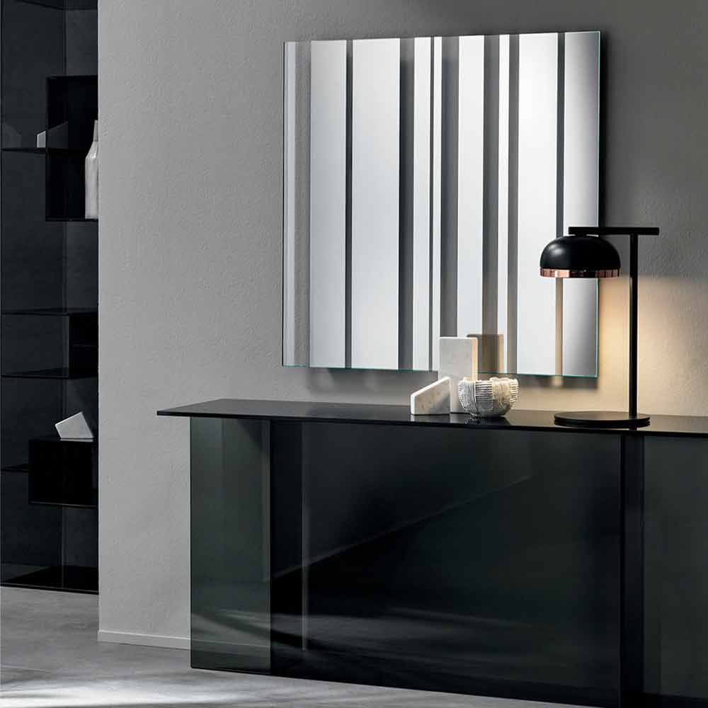 يتم تصنيع مرآة الحائط المربعة Coriandoloيدويًا في إيطاليا باستخدام مواد عالية الجودة . وهو مصنوع من عنصرين متطابقين مكونين من ألواح زجاجية حيث تتناوب الأشرطة العاكسة والأشرطة الشفافة. تسمح لك الأشرطة الشفافة برؤية الجزء الخلفي.