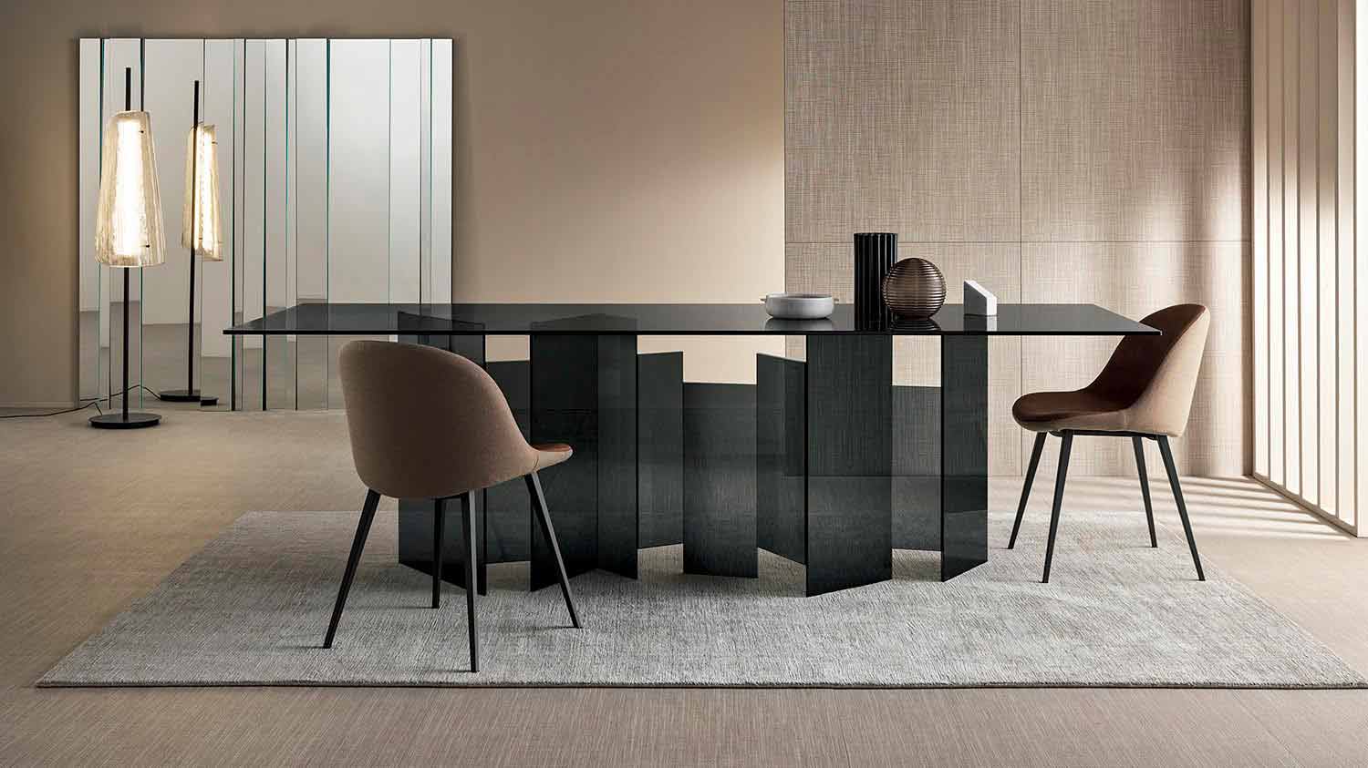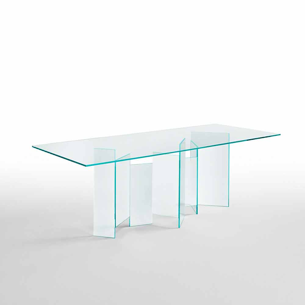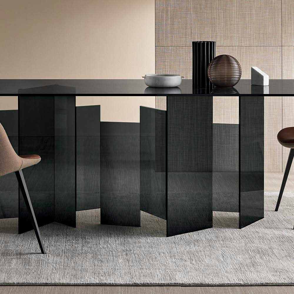 طاولة طعام بتصميم عصري من الزجاج الشفاف أو المدخن، صنع في إيطاليا.