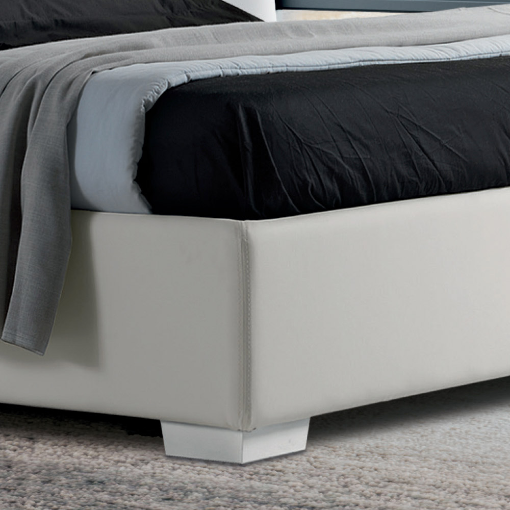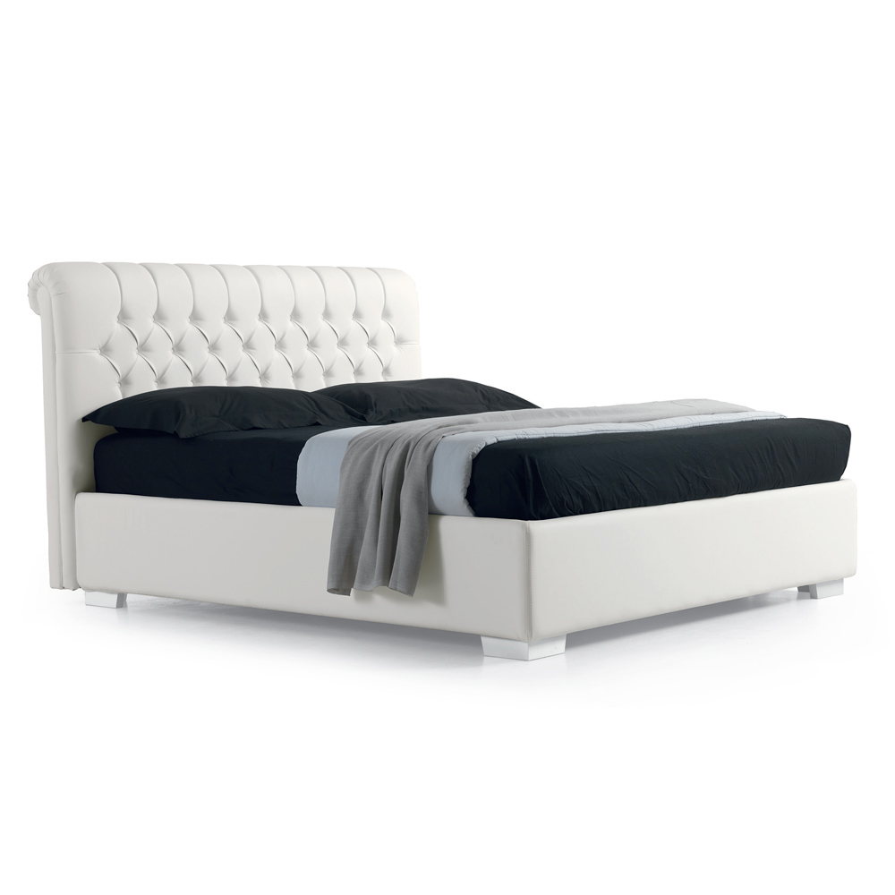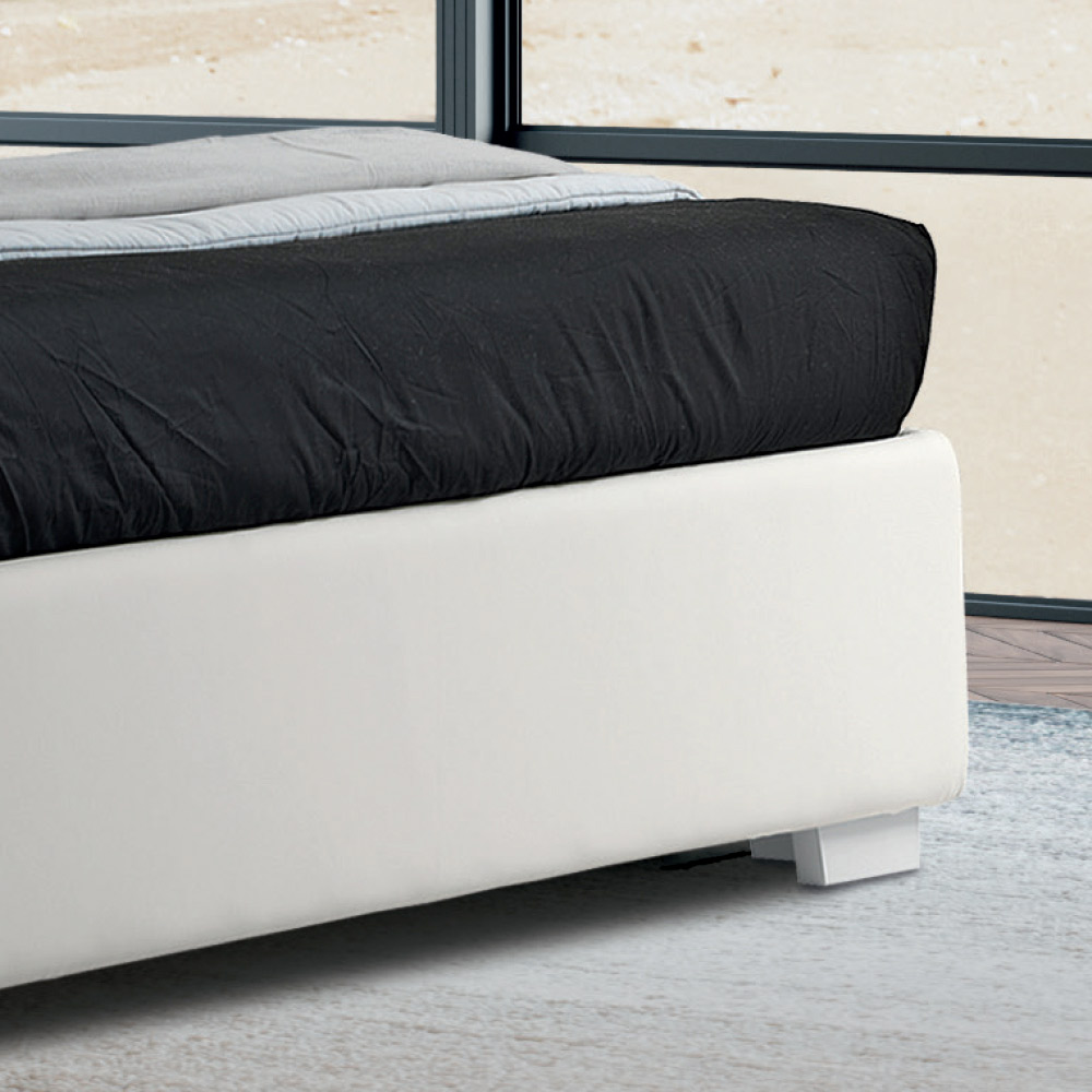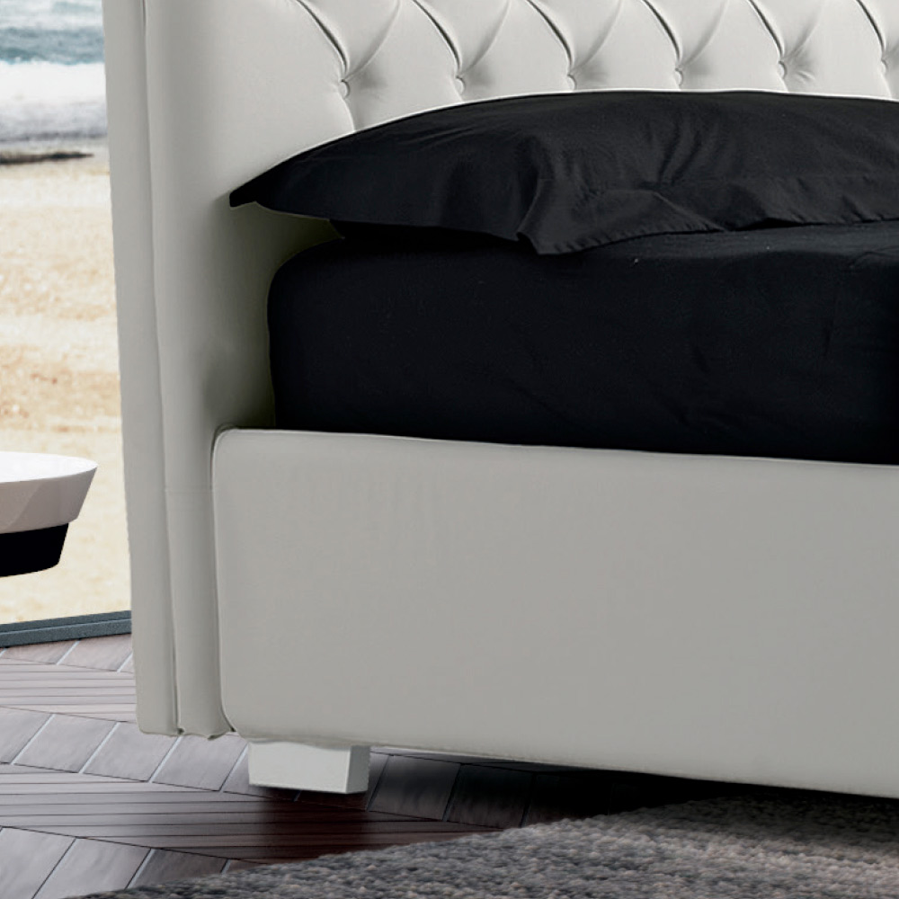 سرير مزدوج مبطن بالجلد البيئي، مع صندوق تخزين، صنع في إيطاليا.