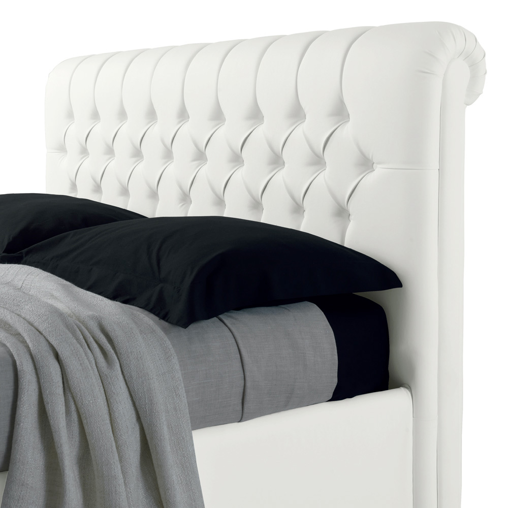 لا شيء يُترك للصدفة: السرير مُنجّد من الخلف ، لتعزيز جماله وديكوره. التنجيد من جلد مادريت البيئي، متوفر بألوان متنوعة .