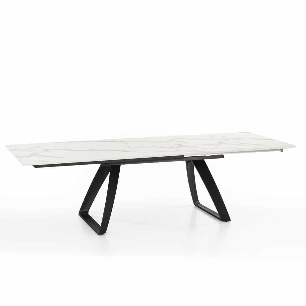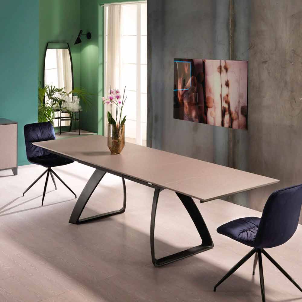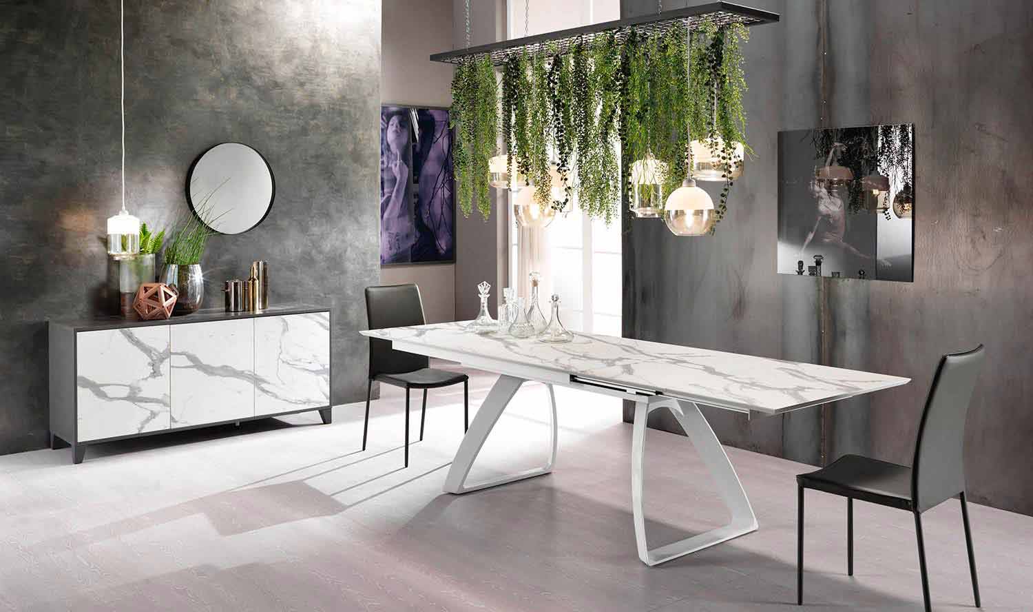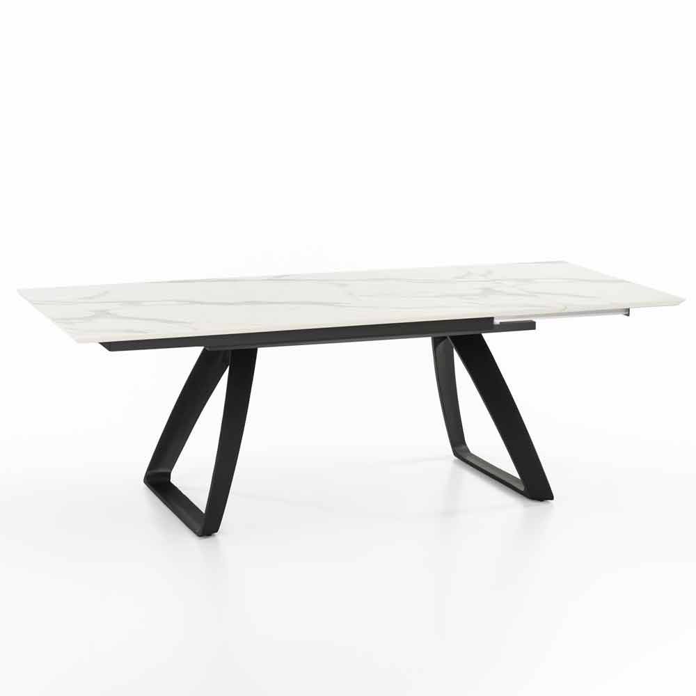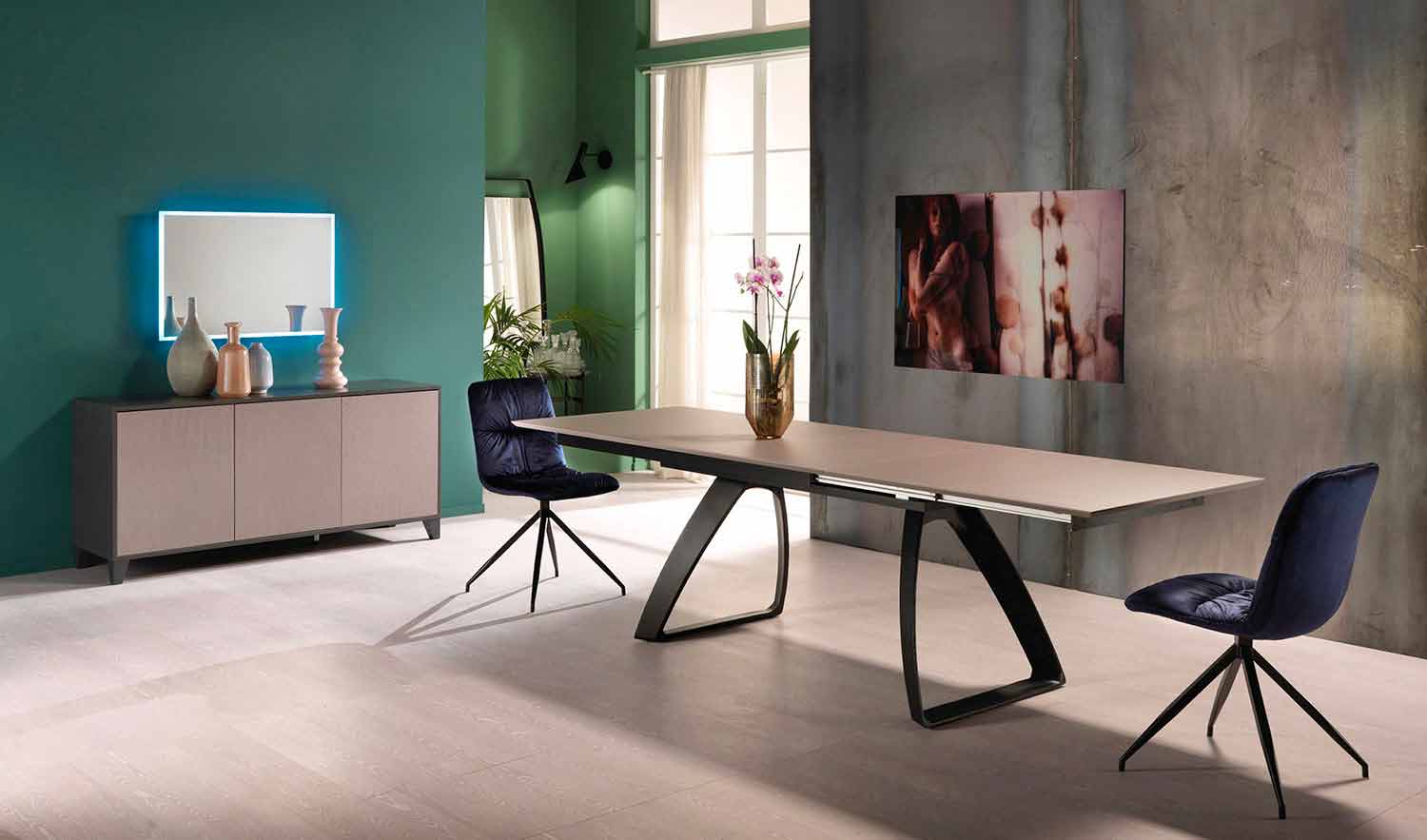 طاولة طعام قابلة للتمديد بأرجل معدنية، فيلونجو فيلونجو هي طاولة قابلة للتمديد بتصميم عصري وأنيق، مثالية لتأثيث غرفك بأناقة ورقي. مصنوعة من أرجل معدنية مطلية بمجموعة مختارة من اللونين الأسود والأبيض وتشطيبات علوية مختلفة: - سطح HPL مع لمسة نهائية من الرخام كالاكاتا؛ - سطح HPL بلمسة نهائية حجرية باللون الرمادي الداكن؛ - الجزء العلوي مصنوع من خشب البلوط الخام؛ - سطح HPL باللون الرمادي الفاتح.