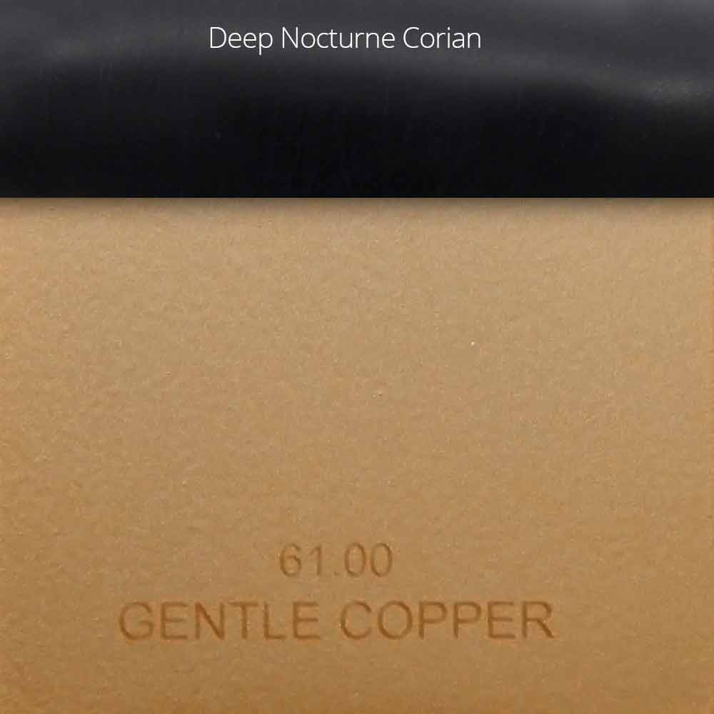 نحاس لطيف + كوريان عميق نوكترن®: لمسة نهائية معدنية نحاسية فاتحة غير لامعة مع عناصر باللون الأسود من DuPont ™ Corian®؛