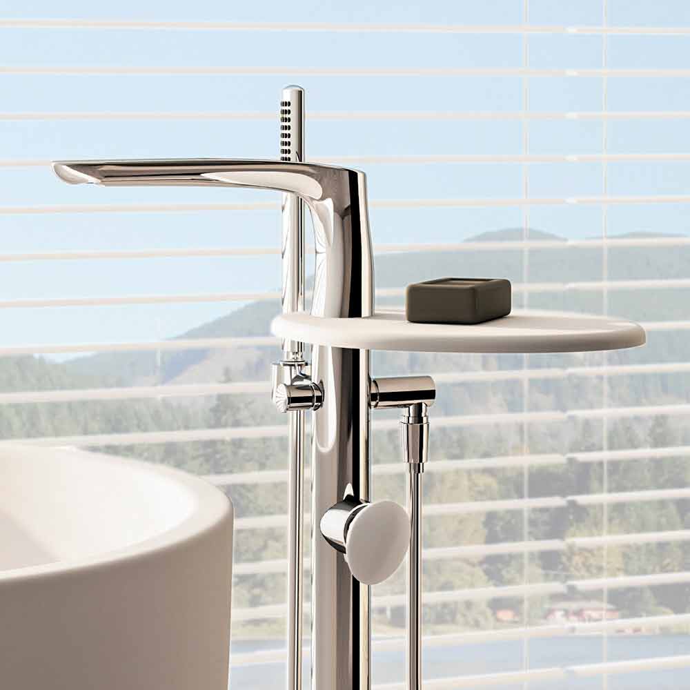 خلاط حمام مثبت على السطح مع دش يدوي مزدوج ومحول ورف من DuPont ™ Corian® صنع في إيطاليا.