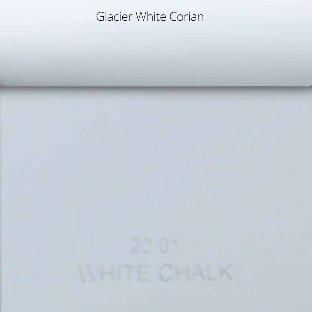 طباشير أبيض + كوريان أبيض جليدي®: لمسة نهائية باللون الأبيض غير اللامع مع عناصر Corian® DuPont ™ البيضاء؛