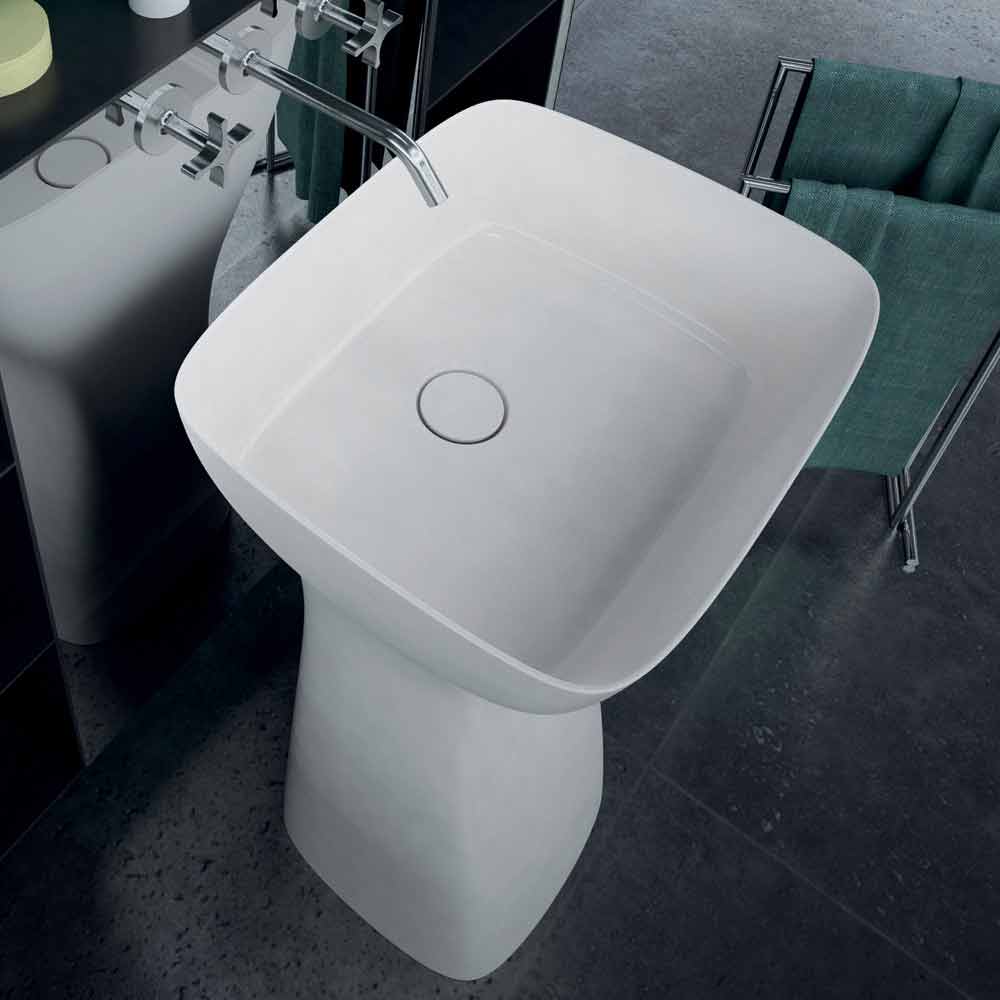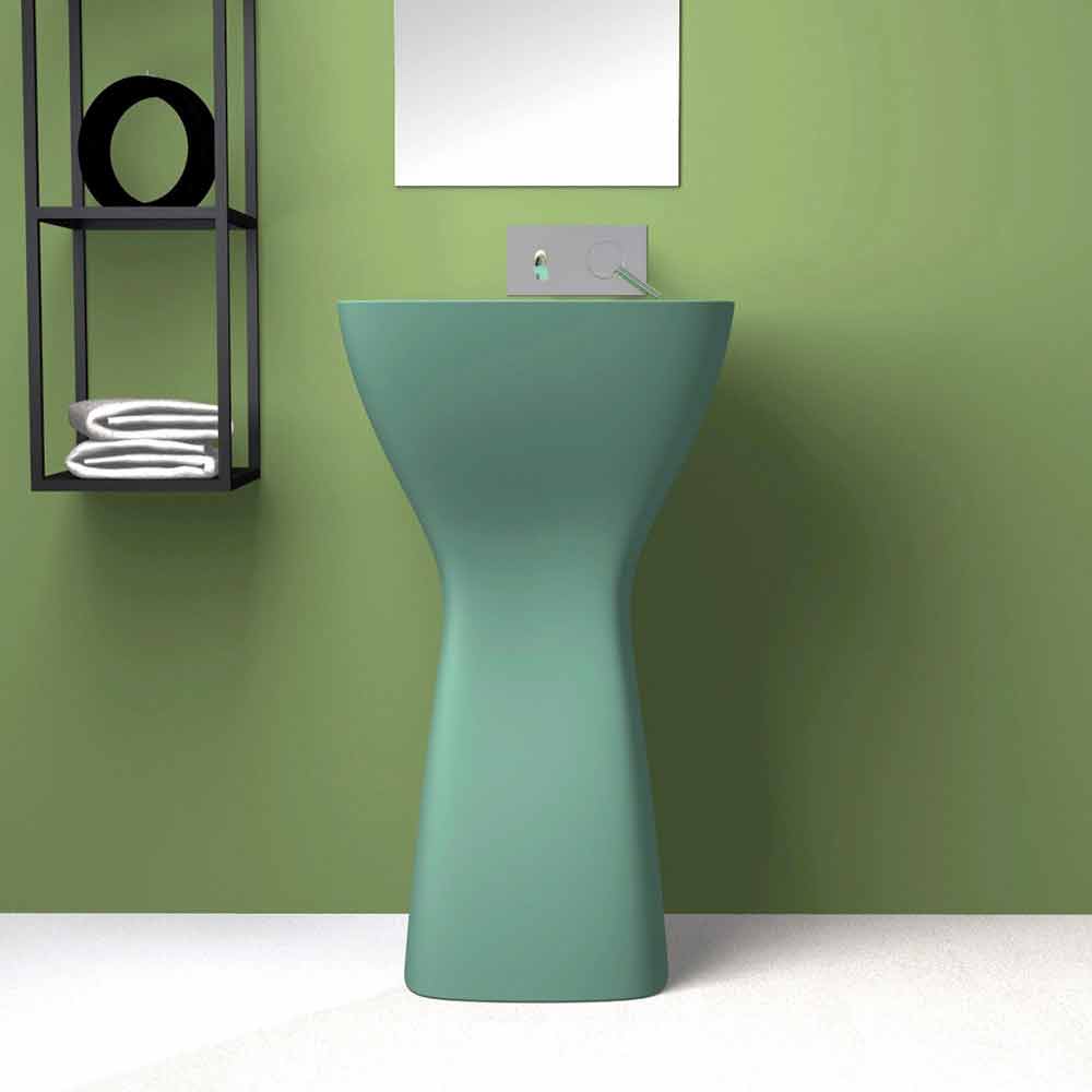 تصميم حوض قائم بذاته من الفخار الملون المصنوع في إيطاليا، فيرمينو فيرمينو هو حوض فخاري قائم بذاته رائع مصنوع في إيطاليا مع حواف رفيعة للغاية وأشكال صارمة، وهو مثالي لتزويد حمامك بالتصميم والوظيفة.
