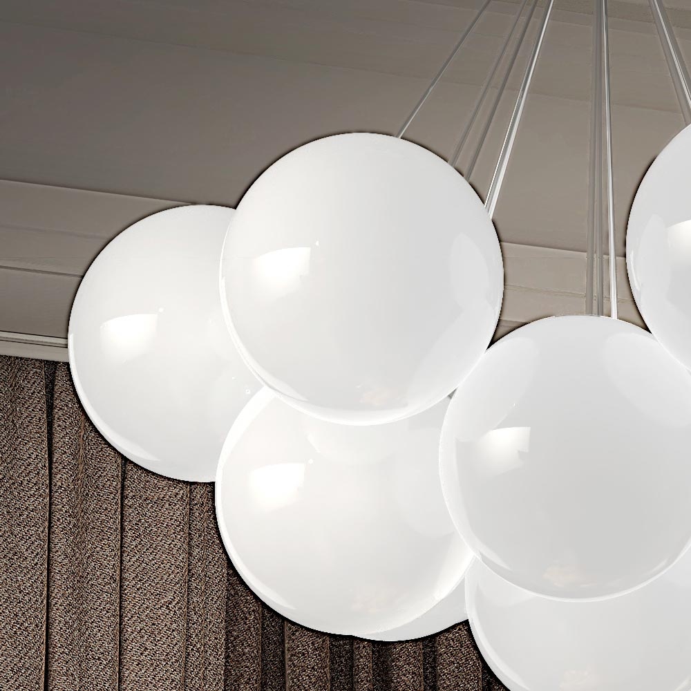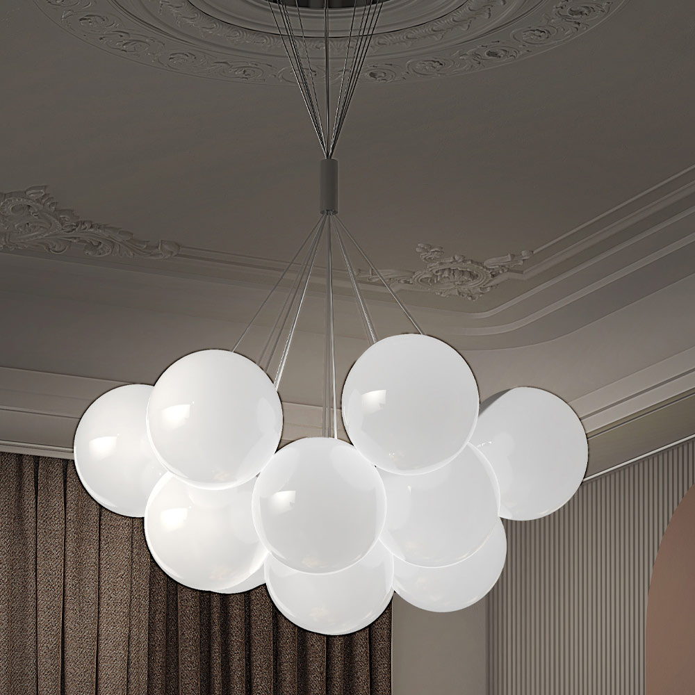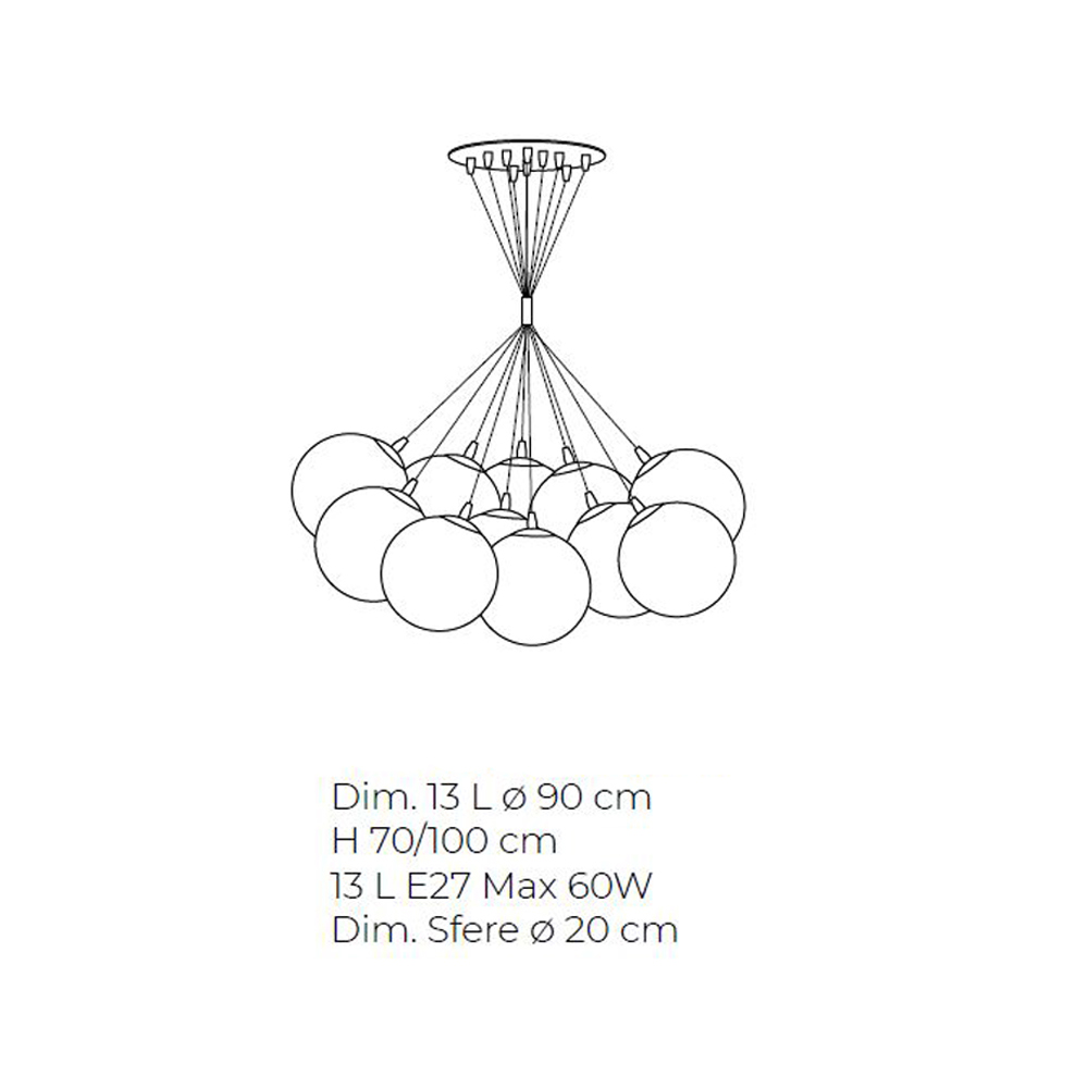 عمل فني ذو أبعاد مهيبة مصنوع من الزجاج المنفوخ يدويًا، مثالي لملء وإضاءة المساحات الكبيرة مثل غرف المعيشة أو غرف الطعام بفضل جمالية أصلية وجودة لا مثيل لها للحصول على نتيجة حصرية وأنيقة بشكل خاص.