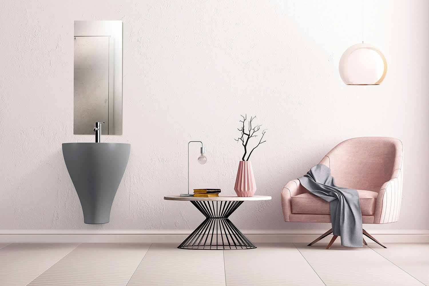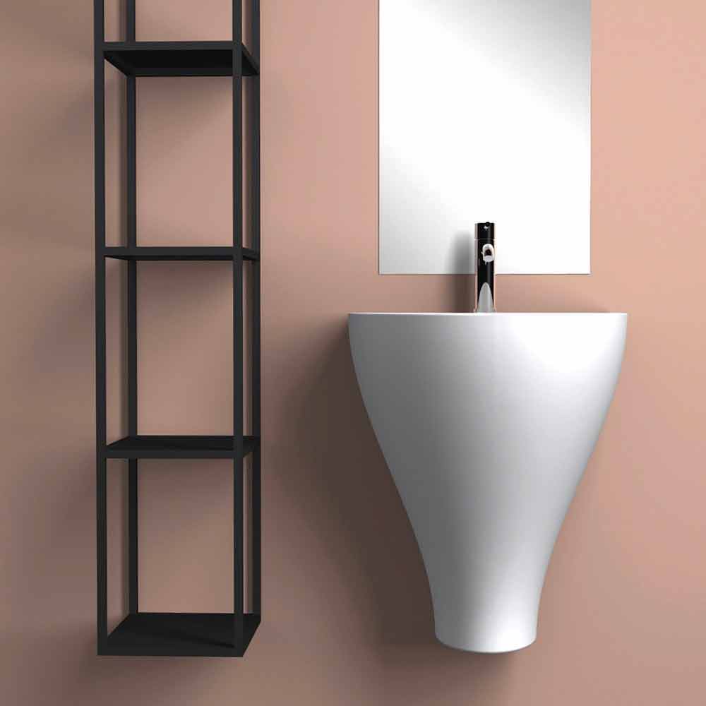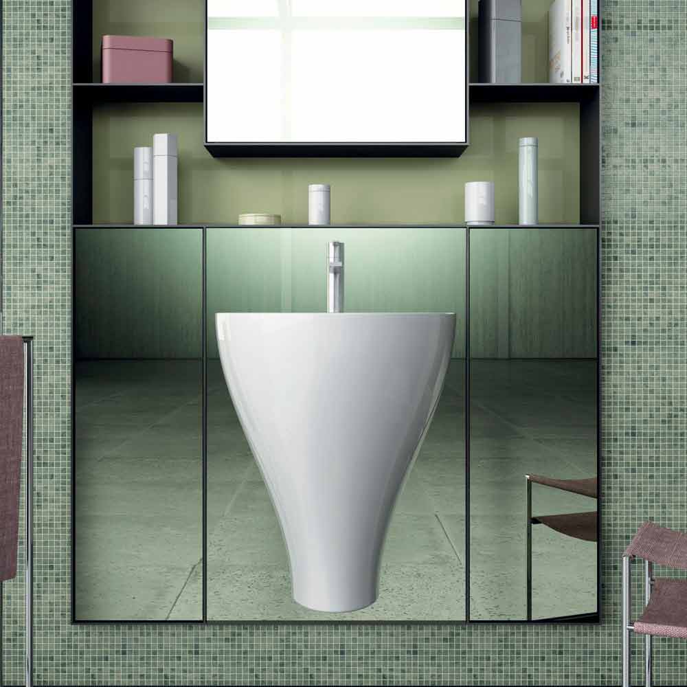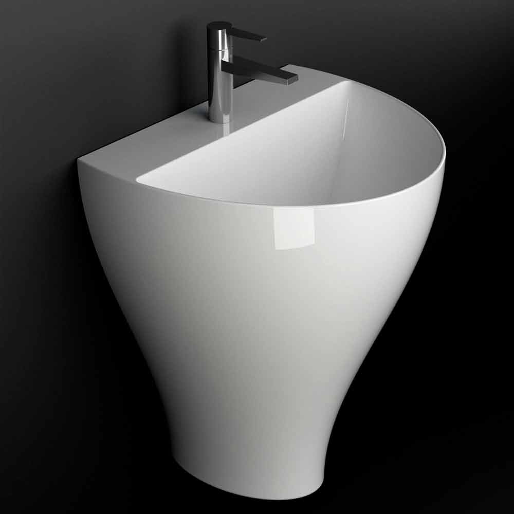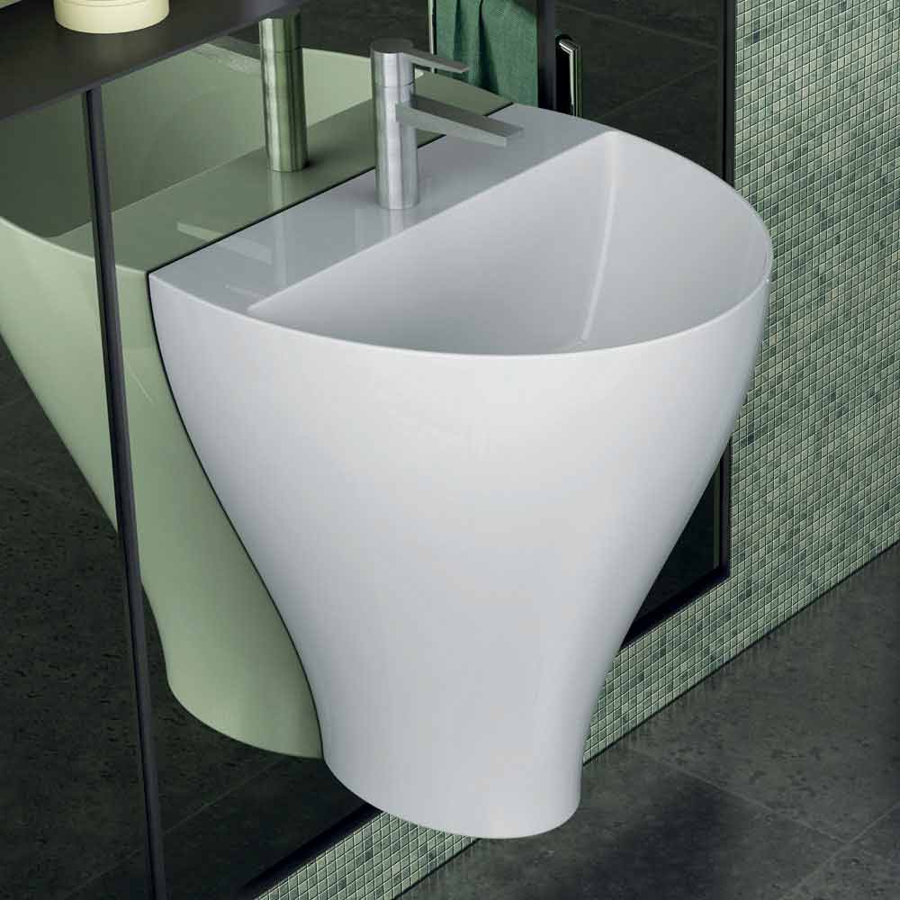 حوض حمام حديث معلق من الفخار الإيطالي، فيوريلو فيوريلو هو حوض حائط رائع مصنوع من الفخار في إيطاليا بأشكال مخفضة ومدببة، مثالي لتجهيز حمامك بالتصميم والعملية.
