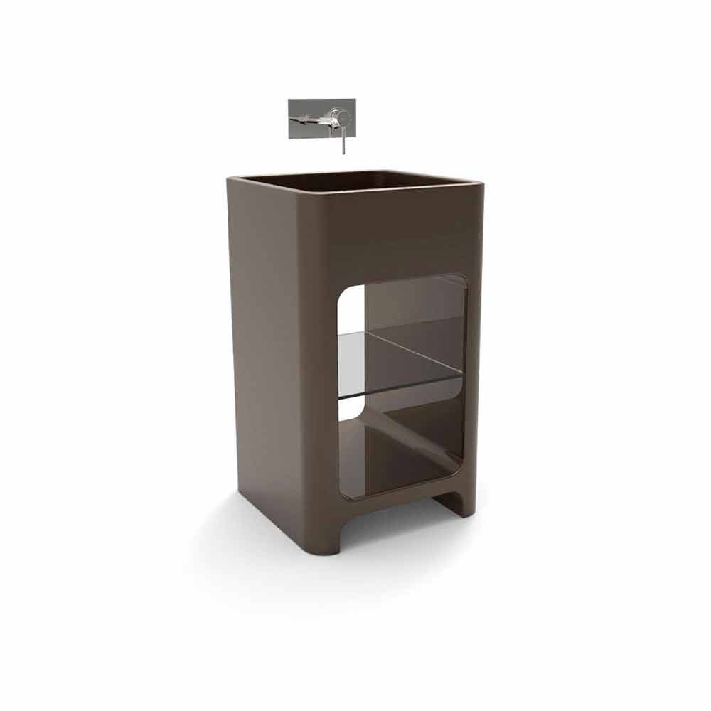 حوض غسيل حديث قائم بذاته، مصنوع في إيطاليا، توفينو توفينو هو حوض غسيل متعدد الوظائف بتصميم مبتكر وحديث، قائم بذاته أحادي الكتلة. مصنوع بالكامل من راتنج Solid Surface® مع حوض استحمام مدمج داخل الهيكل الذي يحتوي على منطقتين للتخزين لمنتجات الحمام أو الكتان، مفصولة بواسطة سطح زجاجي أنيق. مثالية لتجهيز حمامك بالوظائف والتصميم.