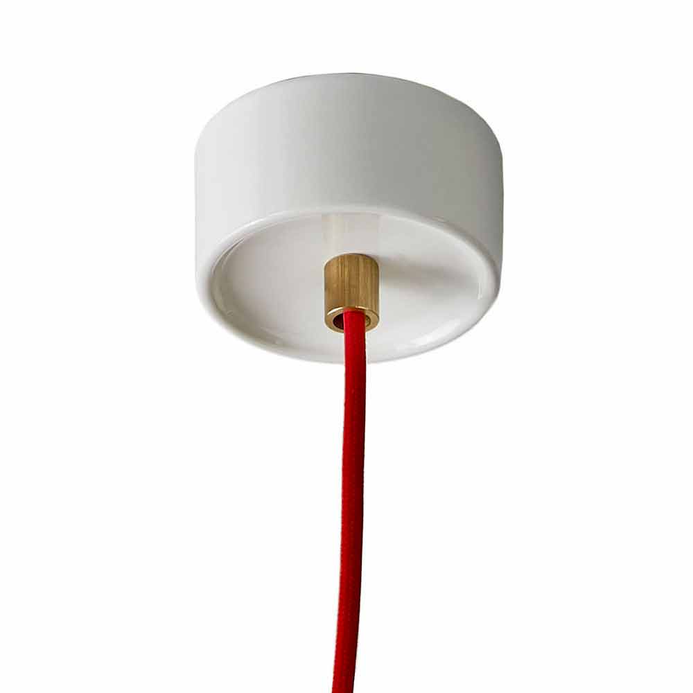 مصباح معلق من السيراميك الأبيض الحديث صنع في إيطاليا آسيا مصباح معلق ملون من السيراميك الأبيض وخشب الزان مع كابل من القماش الأحمر ومشبك كابل من النحاس.
