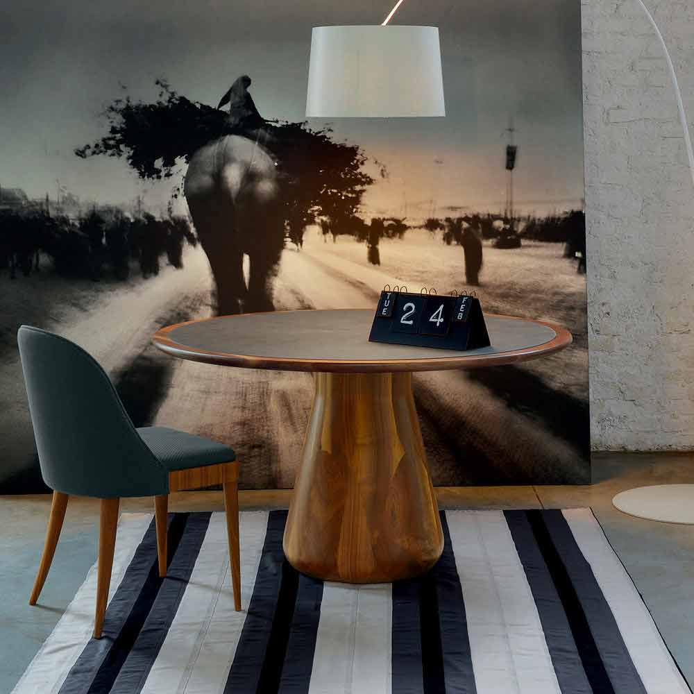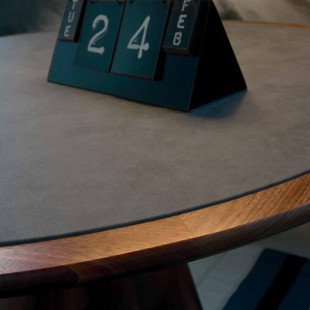 طاولة مستديرة ثابتة ذات سطح من خشب الجوز الطبيعي الصلب، كارلو طاولة مستديرة ثابتة بسطح من خشب الجوز الصلب. قاعدتها من خشب جوز كاناليتو الصلب المصقول. تتميز طاولة كارلو بخطوطها الأنيقة التي تُعزز قيمتها. مصنوعة من خشب الجوز الطبيعي ومطلية بالزيت، وتُبرز أناقتها المميزة من خلال شكل قاعدتها وسطحها المغطى بالجلد البيئي.
