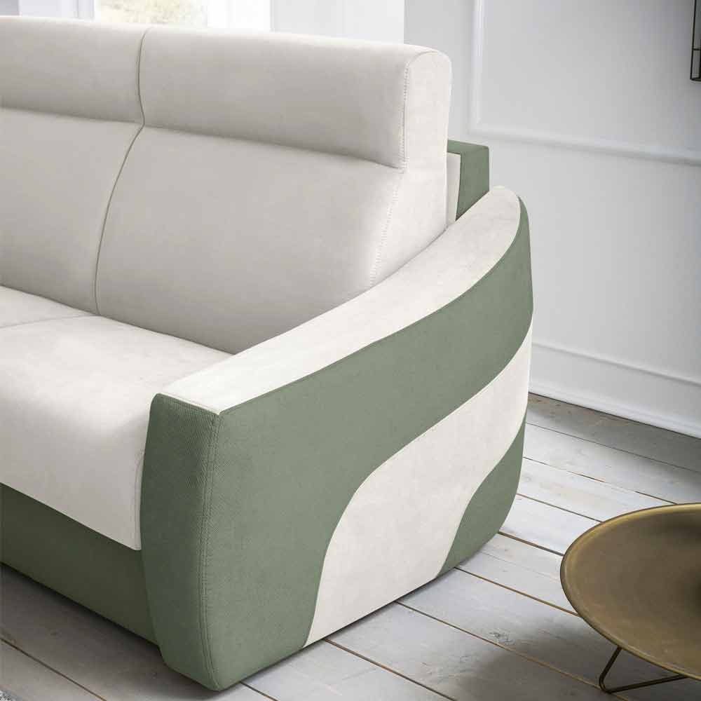 أريكة سرير مزدوجة مصنوعة في إيطاليا مع حشوة من إسفنج البولي يوريثين غير القابلة للتشوه و تنجيد من قماش بلونين الزيتوني والأبيض (قابل للإزالة بالكامل). أشكال ناعمة وخطوط أصلية توفر راحة لا مثيل لها ومقعدًا مريحًا للغاية، بتصميم مبتكر وملمس حصري يناسب البيئات ذات الطراز الحديث، حيث يخطف الأنظار ويجسد جوهر المكان. بفضل وسائد الرأس العالية، ومساند الأذرع الناعمة والواسعة بنقوشها الفريدة، والتباين الرائع بين الألوان، تُعجب هذه القطعة من الأثاث بتميزها الأخّاذ . بلمسة بسيطة، تتحول إلى سرير مزدوج عملي ومريح ، مما يوفر حلاً عمليًا وعصريًا مثاليًا لاستقبال الضيوف حتى في المنازل الصغيرة.
