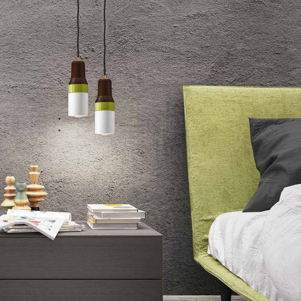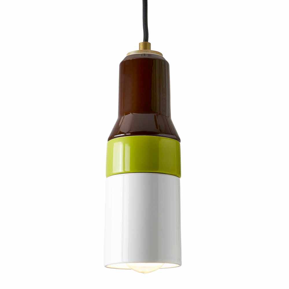 مصباح معلق حديث من النحاس والسيراميك من آسيا صنع في إيطاليا يتميز مصباح التعليق الآسيوي بتصميم عصري للغاية وعصري. مصنوع من السيراميك البني والأخضر والأبيض مع كابل أسود ومشبك كابل نحاسي.
