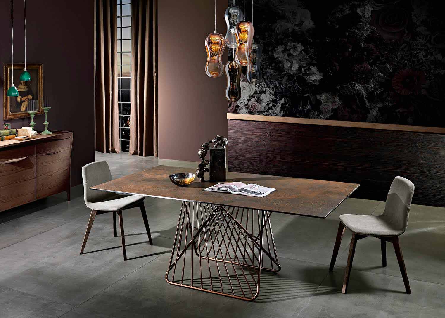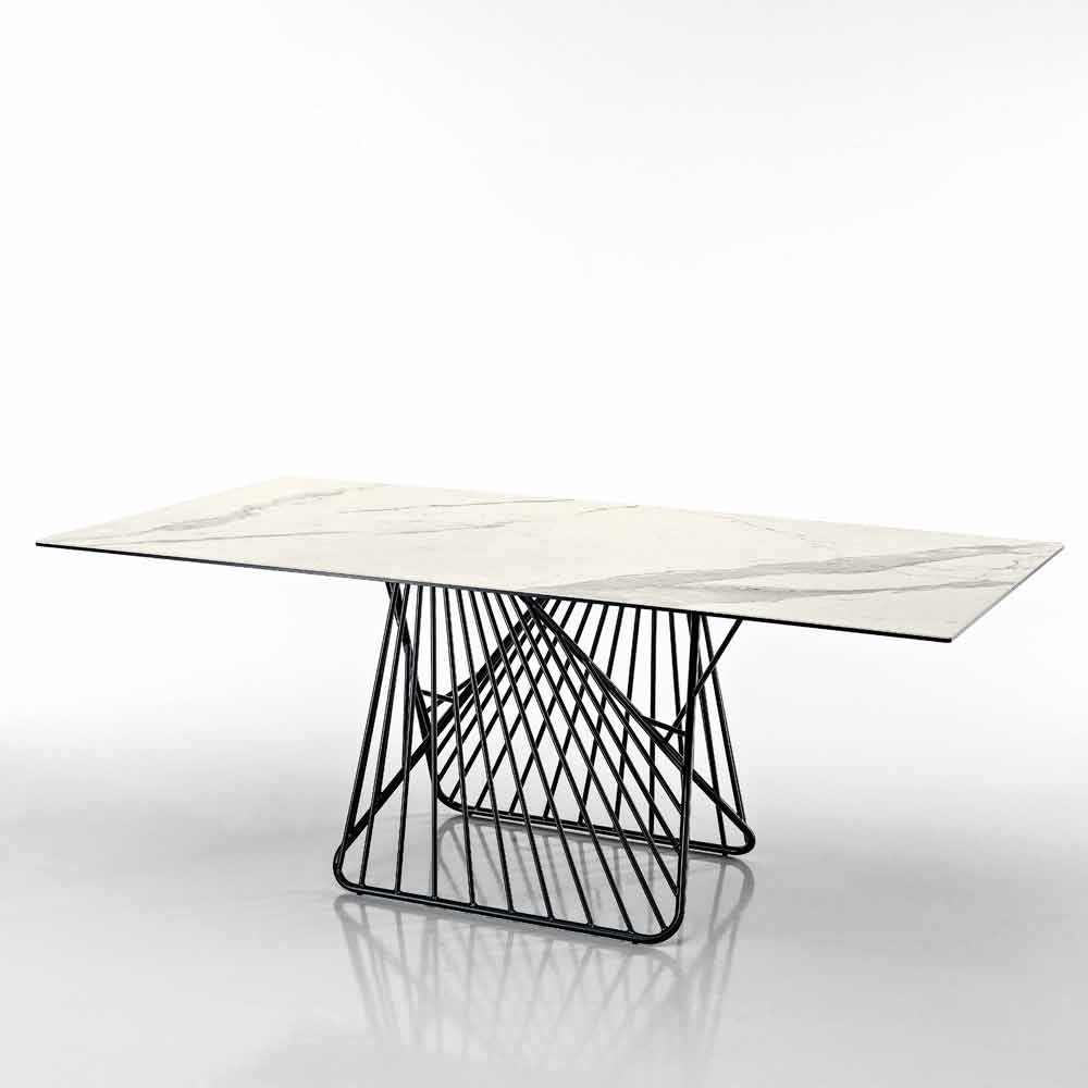 طاولة حديثة بسطح زجاجي سيراميكي مصنوعة في إيطاليا، ميتيا