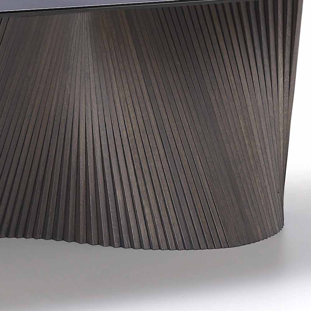 مصنوعة يدويًا في إيطاليا بلمستين مختلفتين وثلاثة أحجام مختلفة: التشطيبات: - قاعدة مكونة من أكثر من 70 شريطًا من خشب الرماد الأسود الرمادي المدهون يدويًا والجزء العلوي على شكل نصف برميل من الخزف الحجري مع تأثير الرخام اللب غير اللامع؛ - قاعدة مكونة من أكثر من 70 شريحة من خشب الدردار بلون الجوز والمدهونة يدويًا، وجزء علوي على شكل نصف برميل من الفخار مع رخام أبيض غير لامع.