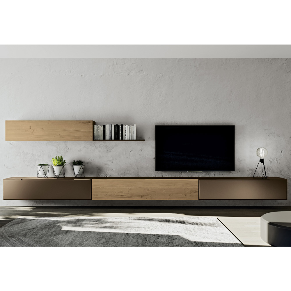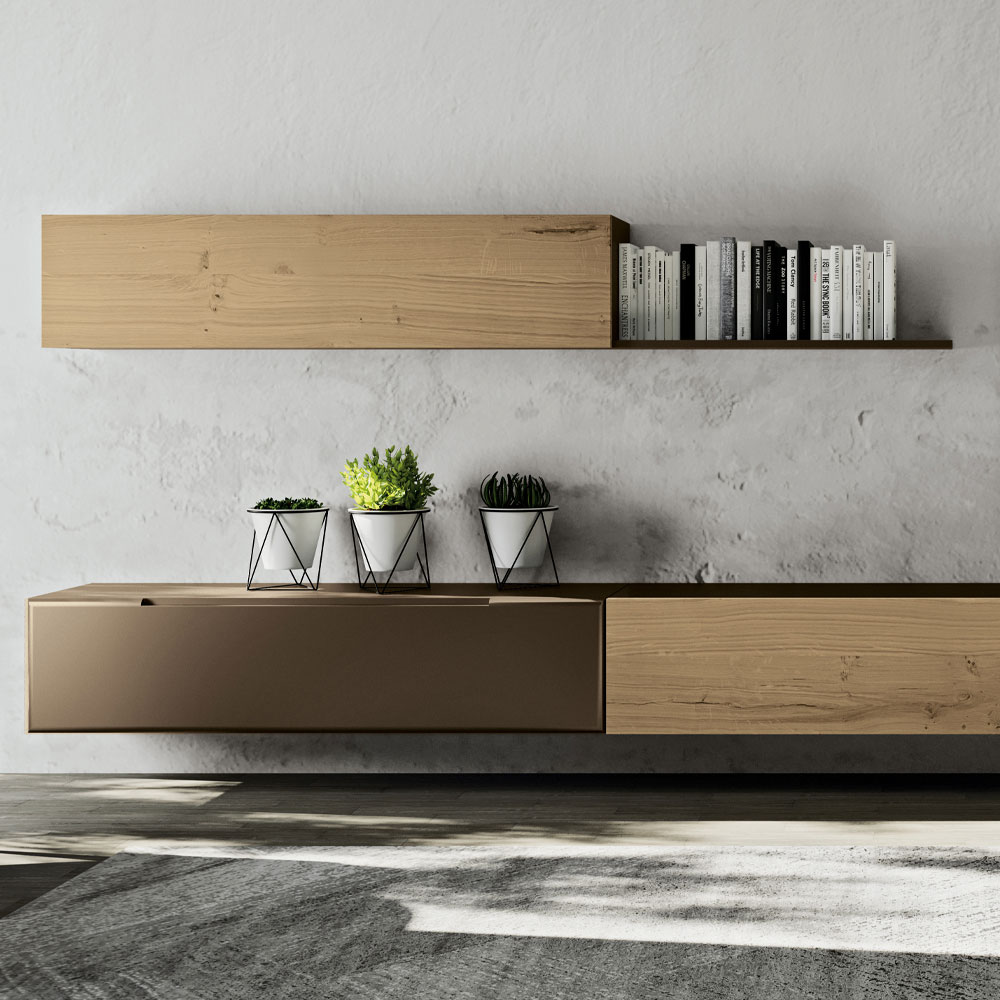 - وحدة حائط معلقة من خشب البلوط، لمسة نهائية من خشب البلوط المعقود الشمالي + الحديد، هيكل من خشب MDF وأبواب من خشب البلوط المعقود