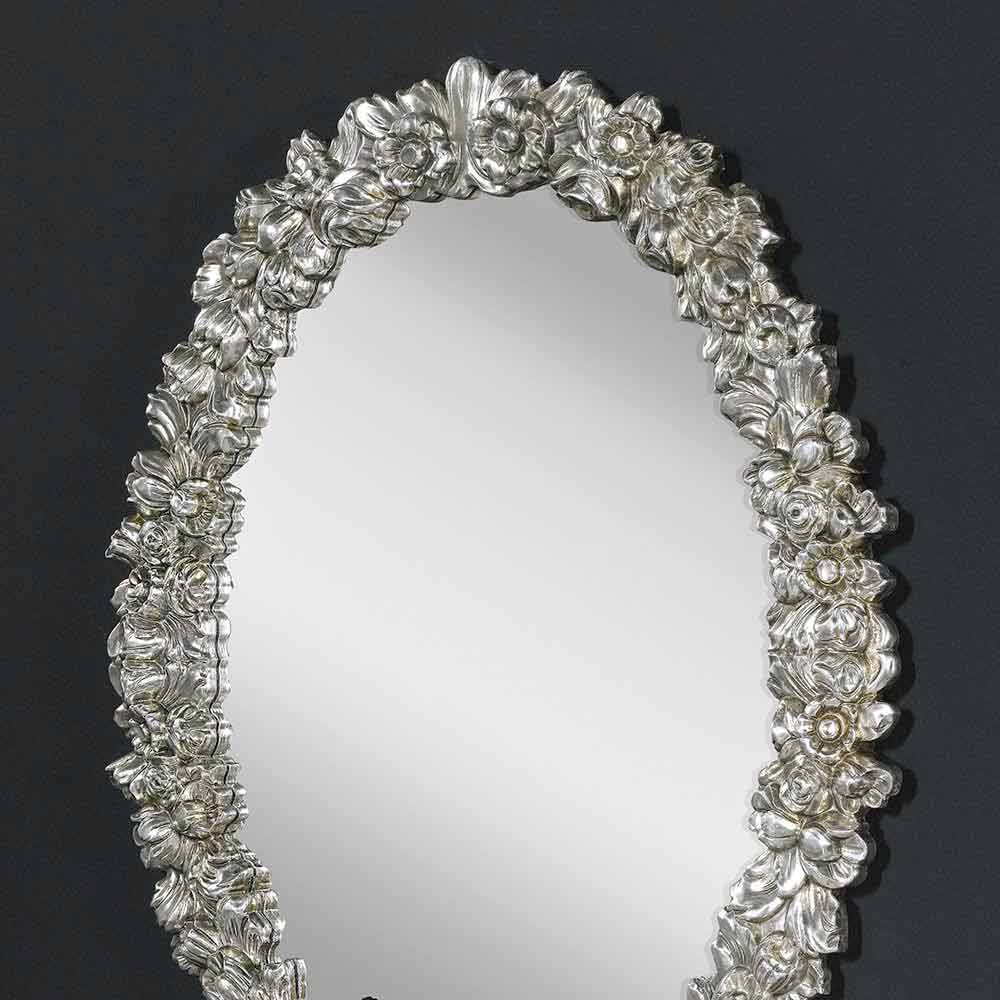 هذه المرآة تحفة فنية في فن الديكور ، فهي قطعة أثاث تُحوّل أي جدار إلى معرض فني أنيق. إطارها زاخرٌ بزهور منحوتة ببراعة، كلٌّ منها بلون يُضفي لمسة عصرية على الزخارف الزهرية الكلاسيكية.
