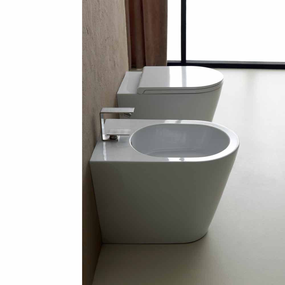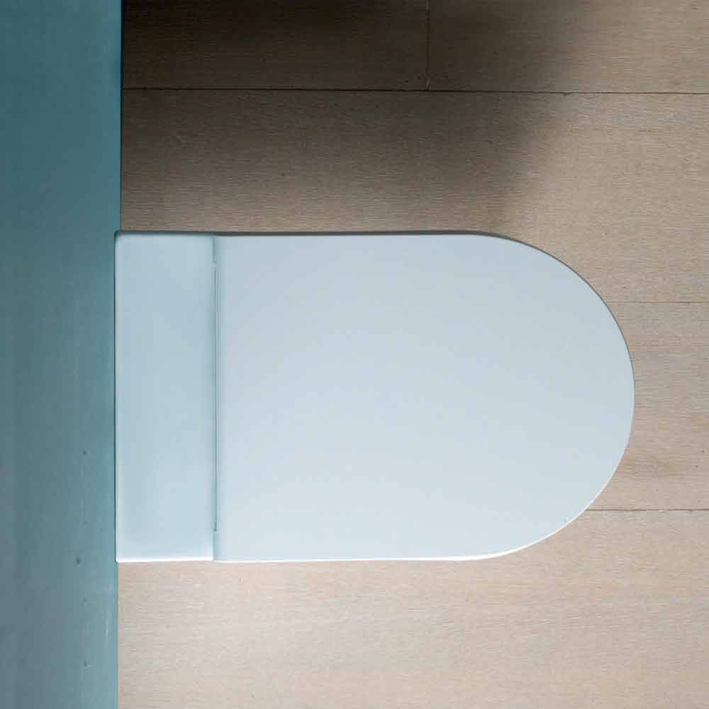 وعاء مرحاض سيراميكي أبيض حديث من Sun Round مقاس 57 × 37 سم صنع في إيطاليا مزهرية خزفية بفتحة تصريف قابلة للتحويل، بتصميم فني منحني. طقم التثبيت متضمن. تُعيد مجموعة سيراميك "صن" ابتكار أشكال نقية وأنيقة. تُمثل تجهيزات الحمام في هذه المجموعة حلاً تقنيًا مبتكرًا لتحسين التنظيف وضمان نظافة أفضل وسهولة في الاستخدام.