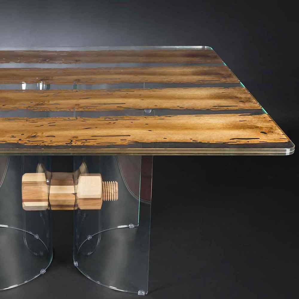 طاولة فينيسيا الحديثة المصنوعة من الخشب والزجاج فينيسيا طاولة فريدة واستثنائية، تُجسّد تاريخ البندقية. صُنعت فينيسيا من خشب البريكولا: "البريكولا" هي الأعمدة التي كانت قائمة في بحيرة مدينة البندقية منذ القدم، لإرشاد القوارب وتنبيه الزوار. سطح الطاولة مصنوع من طبقتين من الزجاج (10 مم + 10 مم). بين الطبقتين، توجد طبقة رقيقة من خشب البريكولا القديم. أما أرجل الطاولة، فهي مصنوعة من زجاج مُقوّس. هذه الطاولة مصنوعة 100٪ في إيطاليا.