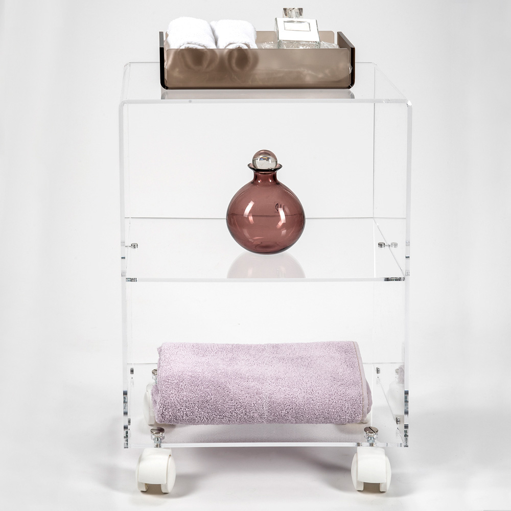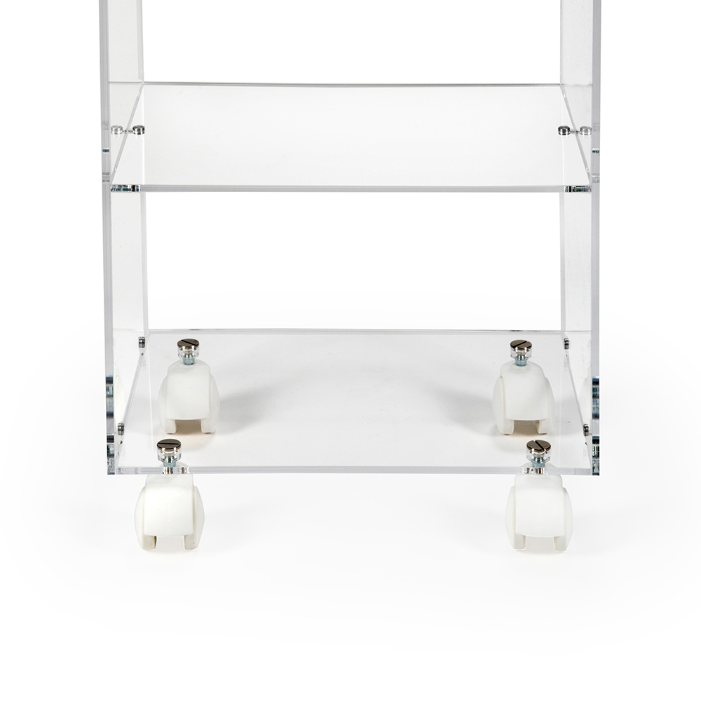 كل رف من هذه العربة يُضفي لمسةً مميزةً على محتوياتها، بفضل الشفافية الكريستالية لزجاج البليكسي غلاس المُختار بعناية. المادة الخام، وهي بوليمر بليكسي غلاس بكر 100% ، تضمن سطوعًا ولمعانًا ثابتين مع مرور الوقت، التزامًا بالجودة واضحًا وملموسًا.