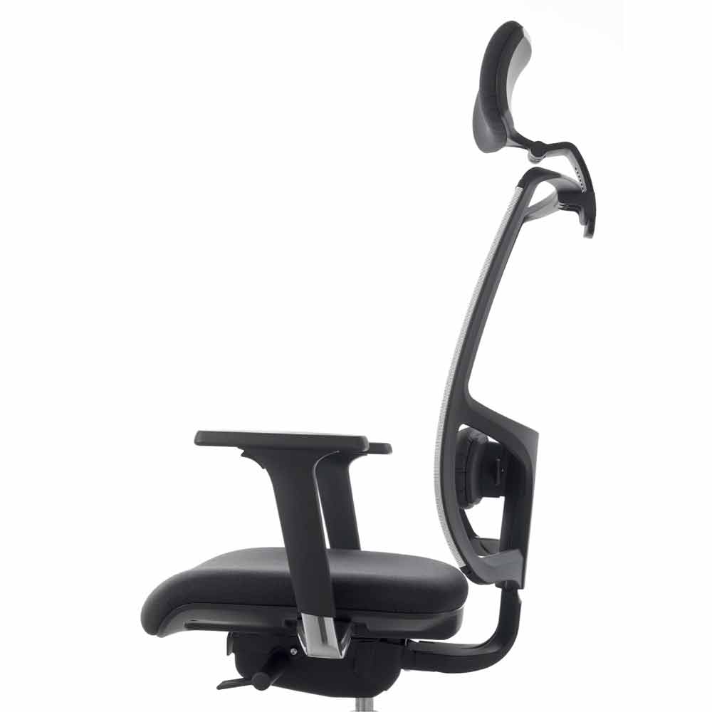 ما يميز كرسي مينا هو مساند الذراعين القابلة لتعديل الارتفاع عن طريق الضغط على الزر، مع شوط 70 مم، وترجمة للأمام / للخلف وعرض (3D)، مصنوع من الألومنيوم المصبوب المصقول، مكتمل مع قمم وأجزاء بلاستيكية من النايلون PA6 بنسبة 15٪ مع ألياف زجاجية باللون الأسود، مكتمل مع سطح PU ناعم أسود. مزود أيضًا بمسند رأس محمل مصنوع من النايلون PA6 بنسبة 15% مع ألياف زجاجية، باللون الأسود، قابل للتعديل في الارتفاع والعمق للعثور على أفضل وضع، ومكتمل ببطانة إسفنجية موسعة من مادة البولي يوريثين، مصبوبة ومقاومة للحريق ومطلية.