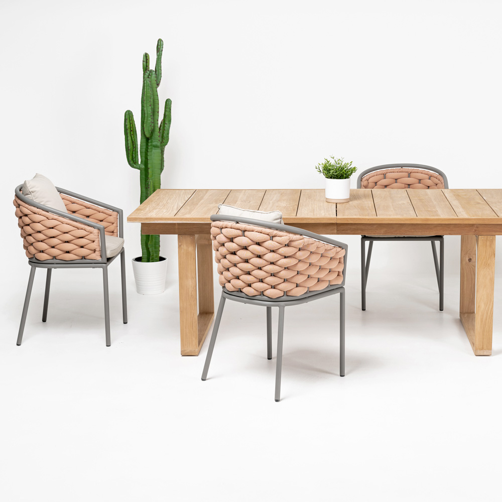يتميز هذا الكرسي بهيكله المتين وسهل الاستخدام ، مع الحفاظ على تصميمه الأنيق. تصميمه العصري يمنحه طابعًا قويًا، مما يجعله مثاليًا لتجهيز المساحات الخارجية، سواءً في البيئات الخاصة أو الخاصة.