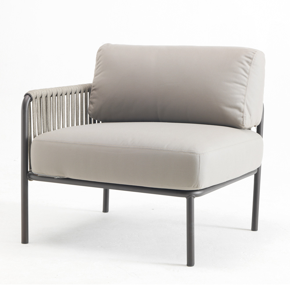 كرسي خارجي مصنوع من الفولاذ والحبل مع وسائد صنع في إيطاليا.
