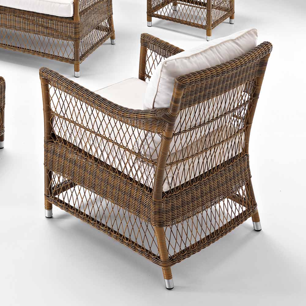 أسلوب النسيج راقي وحساس، ومع الجودة العالية للمواد وأشكالها الحاسمة، يجعل هذا الكرسي مثاليًا لتأثيث التصميمات الداخلية والخارجية، سواء البيئات الخاصة أو التعاقدية مثل التراسات والشرفات والحدائق، ولكنه يجد أيضًا موقعًا مثاليًا بجوار حمام السباحة.