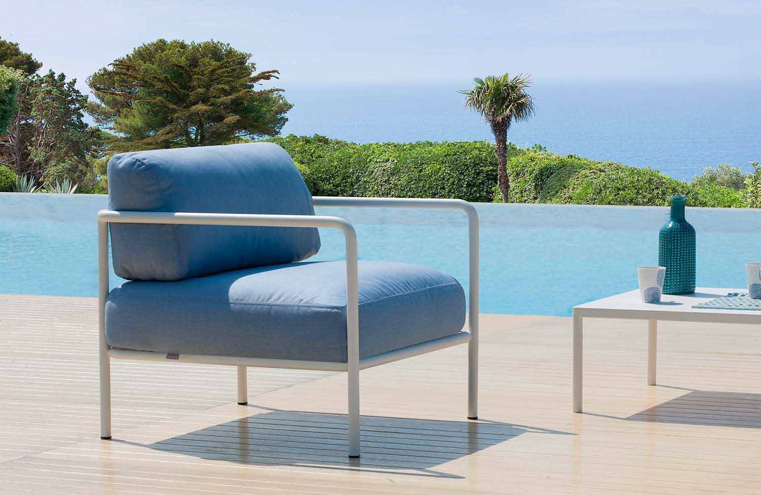 كرسي خارجي مصنوع في إيطاليا بمواد خام مختارة لضمان للعميل منتج نهائي يتميز بالمتانة الممتازة بمرور الوقت ومقاومة لجميع العوامل الجوية بالإضافة إلى البقع والعفن والأشعة فوق البنفسجية. هيكله ومساند ذراعيه مصنوعان من الحديد المجلفن المطلي بمسحوق الطلاء الحراري، بينما وسادة المقعد والظهر مصنوعة من قماش أكريليك مصبوغ 100%. هاتان المادتان المستخدمتان معًا تمنحان المنتج متانة دون إغفال جماله البصري والزخرفي. مثالي لإكمال ديكورات البيئات الخارجية التي تتطلب أناقة وشخصية مميزة، بفضل خطوطه البسيطة التي تجعله قطعةً فريدةً بتصميمها.