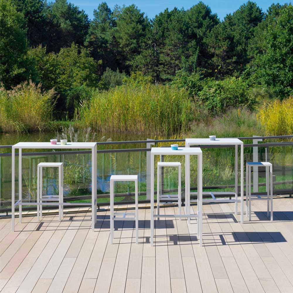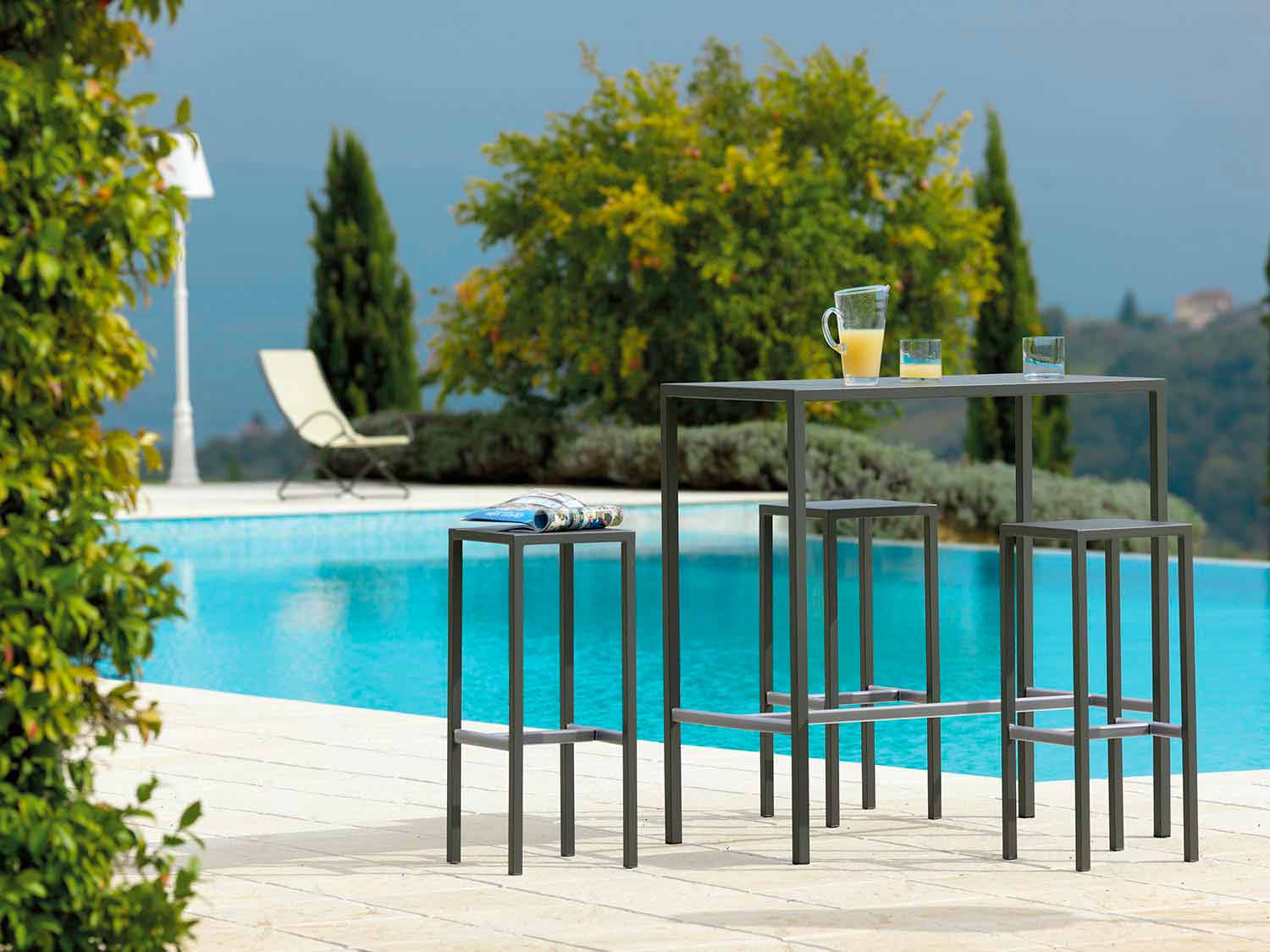كرسي بار خارجي مرتفع مصنوع من الحديد المجلفن المطلي بالمسحوق صنع في إيطاليا.