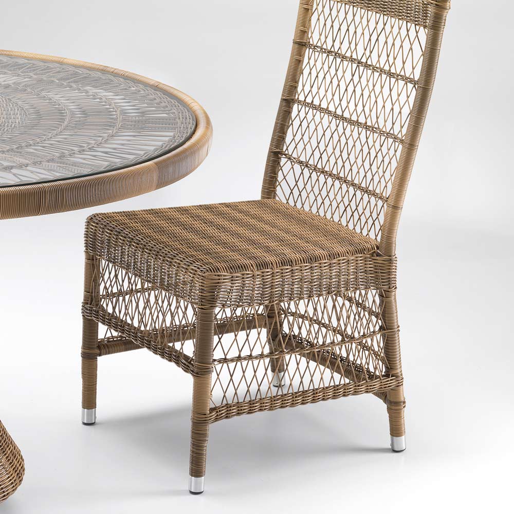 أسلوب النسيج راقٍ وحساس، ومع الجودة العالية للمواد وأشكالها الحاسمة، يجعل هذا الكرسي مثاليًا للأثاث الداخلي والخارجي، سواء للبيئات الخاصة أو التعاقدية مثل التراسات والشرفات والحدائق، ولكنها تجد أيضًا موقعًا مثاليًا بجوار حمام السباحة.