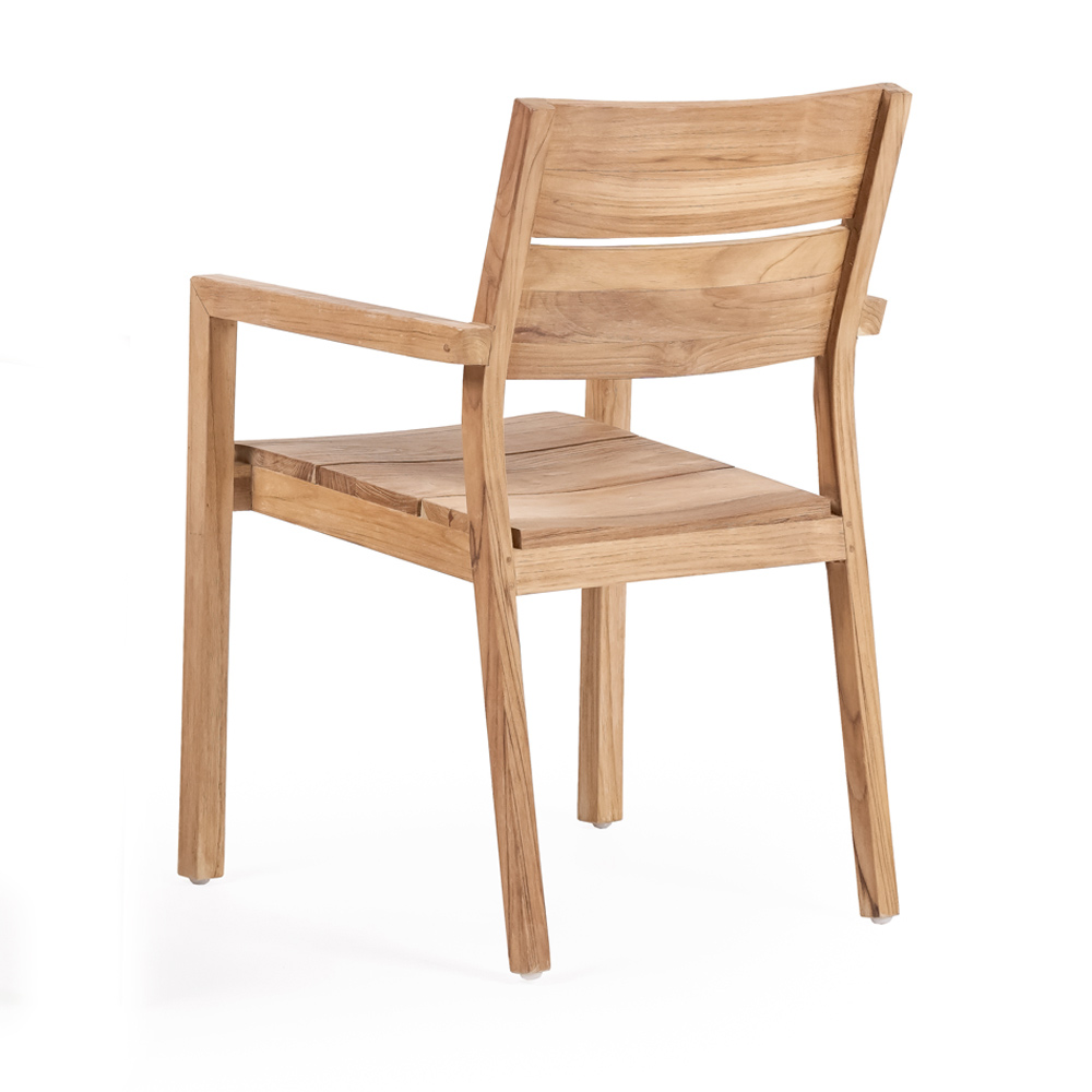 كرسي حديقة مع مساند للذراعين بالكاملبهيكل من خشب الساج بلمسة نهائية طبيعية مصقولة. هذا المنتج، بخطوطه الأنيقةوالأساسية ، مثالي لمحبي الأسلوب العصري والبسيط، ولتنظيم مساحاتهم الخارجية أو المحمية بطريقة عملية.