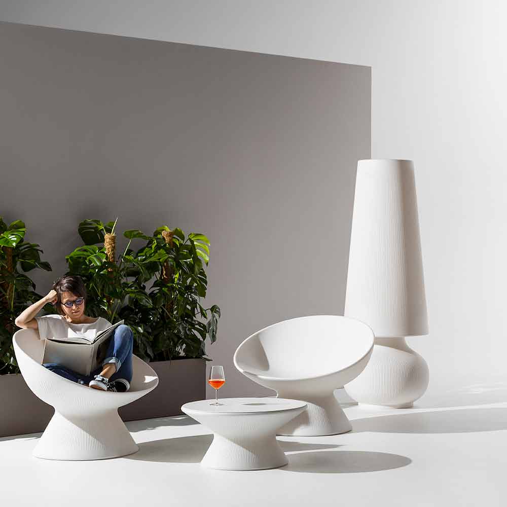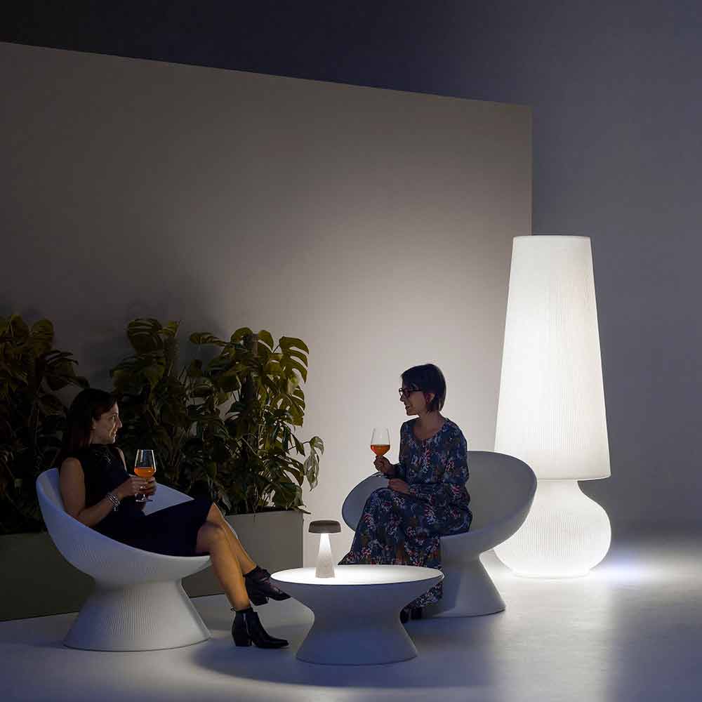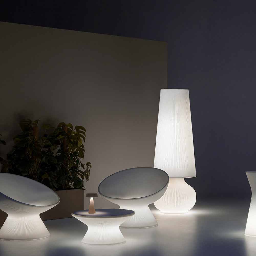 مصباح أرضي لتأثيث المساحات الخارجية، مصنوع في إيطاليا من البولي إيثيلين الأبيض. يتميز هذا المصباح بتصميمه الأنيق والعصري، وطابعه النحتي، وهو حل مثالي لتأثيث المساحات الخارجية كالحدائق والشرفات أو المساحات المكتبية التي تتطلب لمسة جمالية مبتكرةوأصلية . لتعزيز قيمته وشخصيته القوية، أُضيفت مجموعة إضاءة تُمكّن الهيكل بأكمله من أن يصبح مصدر إضاءة إبداعيًا، قادراً على خلق أجواء رائعة مثالية لأمسيات رائعة مع الأصدقاء. بفضل تصميمه الفريد والعصري، يُعدّ حلاً مثاليًا حتى عند إطفاء الإضاءة، حيث يُمثّل عنصرًا زخرفيًا مثاليًا يُكمّل الأثاث، ويُثري جماله بأناقة.