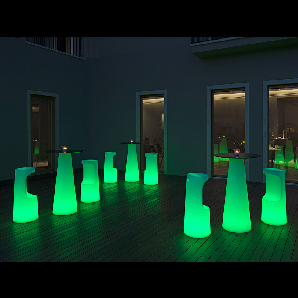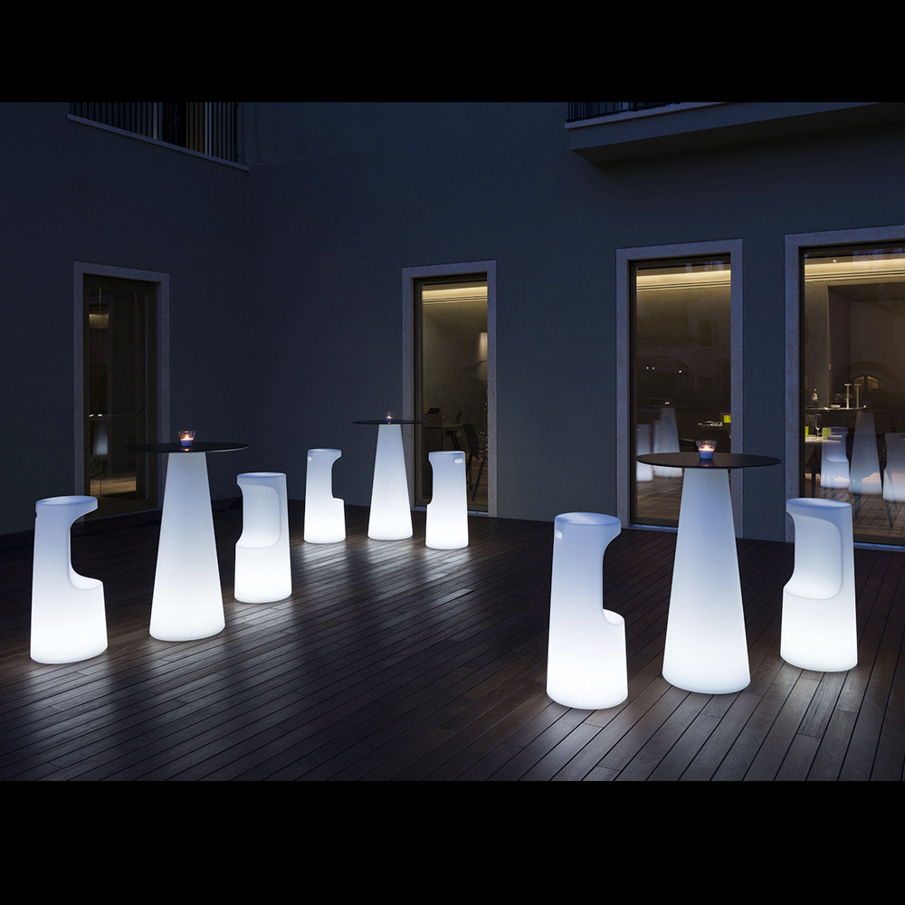طاولة بتصميم خارجي من HPL والبولي إيثيلين مع إضاءة LED RGB، صنع في إيطاليا.