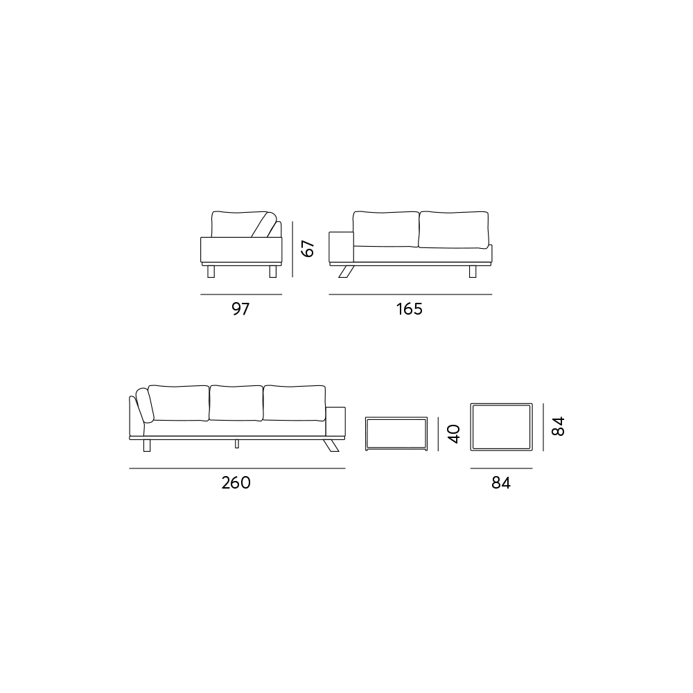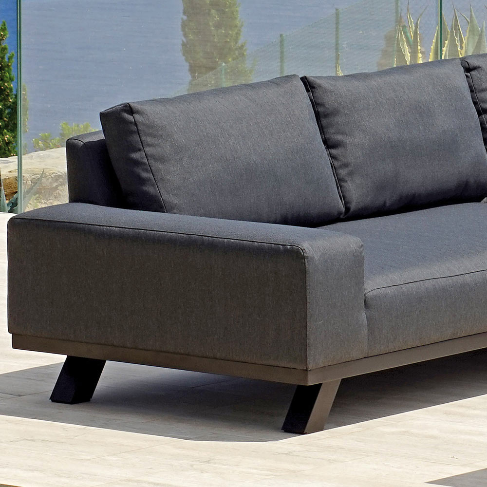 طقم حديقة يتكون من كنبة بثلاثة مقاعد وأريكة لشخصين مع وسائد ومساند للذراعين من قماش تيكستيلين ناعم أسود ببطانة سريعة الجفاف، وطاولة قهوة بسطح سيراميك وهيكل من الألومنيوم الأسود . براغي من الفولاذ المقاوم للصدأ متضمنة. طقم غرفة معيشة خارجية يتميز بتصميم محايد وأنيق، وتبرز جمالياته بأشكاله الأساسية التي تتلاءم تمامًا مع أي نمط أثاث.