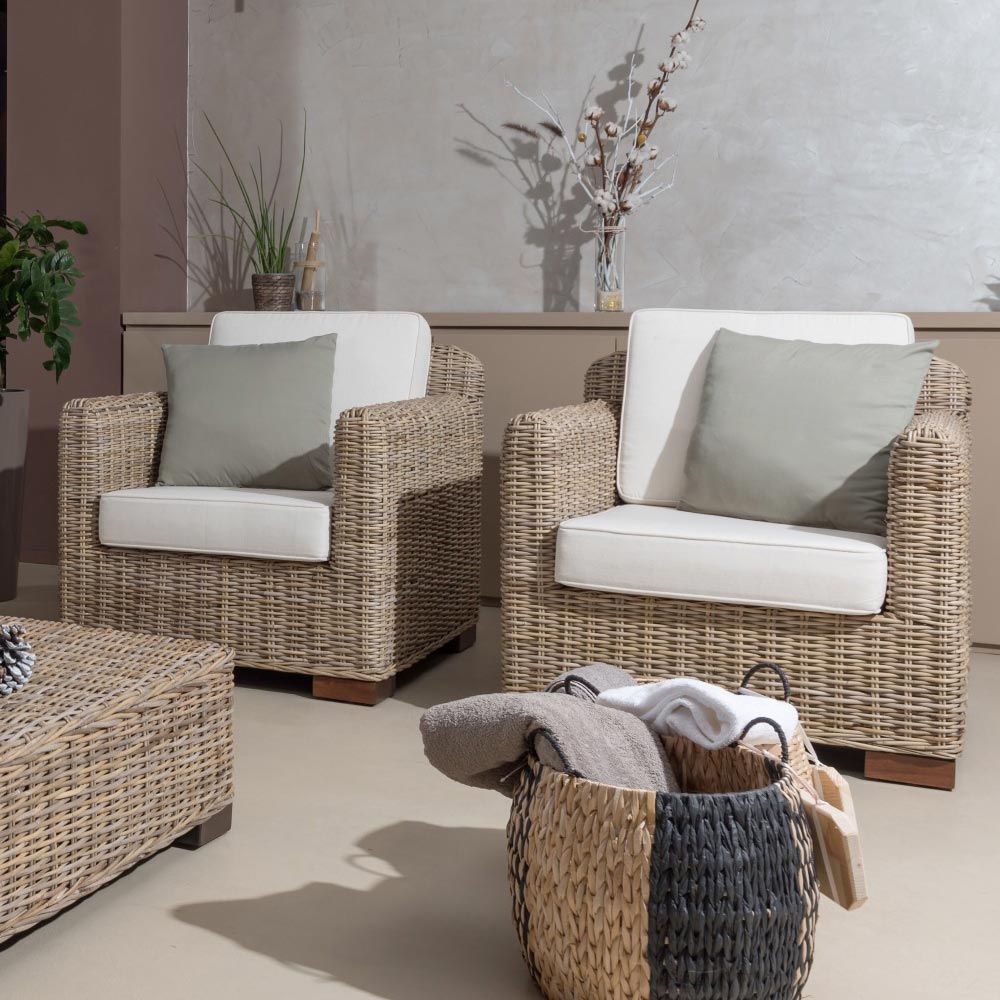 تنتمي غرفة المعيشة إلى مجموعة كاملة يتميز هذا الكرسي بلونه الرمادي الطبيعي، بخطوطه المستقيمة ومقعده العريض. يُعدّ هذا الكرسي مادة طبيعية من بين أكثر المواد الطبيعية متانة، ولكنه يبقى خفيف الوزن دائمًا. يجمع هذا الكرسي بين الراحةوالضرورة بأسلوب خالد، يتشكل بفضل استخدام الألياف الطبيعية التي توفرها الطبيعة. منتجات هذه المجموعة مناسبة لتأثيث المساحات الخارجية المحمية ، مثل الشرفات والشرفات والتراسات والشرفات الأرضية وشرفات المراقبة، مما يضفي عليها دفئًا وأناقةً فريدتين. كما أنها مناسبة لأي بيئة داخلية .