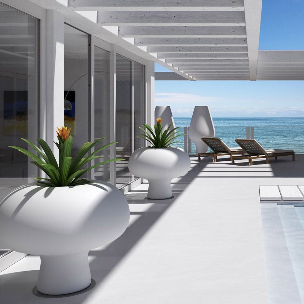 مزهرية حديقة مضيئة مصنوعة بالكامل في إيطاليا من البولي إيثيلين غير الشفاف ، مزودة بمجموعة إضاءة LED . تُضفي لمسةً مميزةً بأشكالها المهيبة التي تُذكرنا بالشكل المُصمم لعنصرٍ زهري. يُضفي تصميمها الجمالي أجواءً ذات تأثيرٍ عاطفيٍّ كبير، مُستحضرةً صورة حديقةٍ كبيرة، مُضفيةً أجواءً أصليةً وأنيقةً في آنٍ واحد، بلمسةٍ بسيطةٍ راقية . بفضل إضاءة LED، تُعدّ مثاليةً لإنشاء نقاط إضاءة عالية التأثير في البيئات الخارجية الكلاسيكية والمعاصرة، مثل الحدائق، والشرفات، والشرفات، أو المساحات المفتوحة. مُجهزةٌ بقاعدة تثبيت .