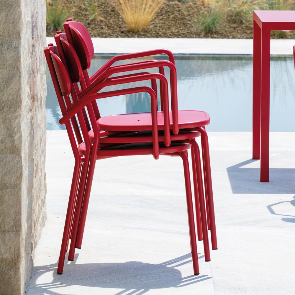 كرسي بذراعين خارجي قابل للتكديس،مصنوع بالكامل في إيطاليا من حديد مجلفن قابل لإعادة التدوير، مطلي بالمسحوق، ومجلفن ومطلي، ومجهز بمساند ذراعين عملية ومريحة . قطعة أثاث مثالية للمساحات الخارجية تجمع بين التصميم العملي والبساطة . أشكاله البسيطة والعصرية، وألوانه الجريئة والمشرقة التي تضفي حيوية على المكان، ووظائفه العملية بأعلى مستويات الجودة، تجعله الحل الأمثل لتأثيث أي بيئة، سواءً كانت منزلية أو مكتبية.