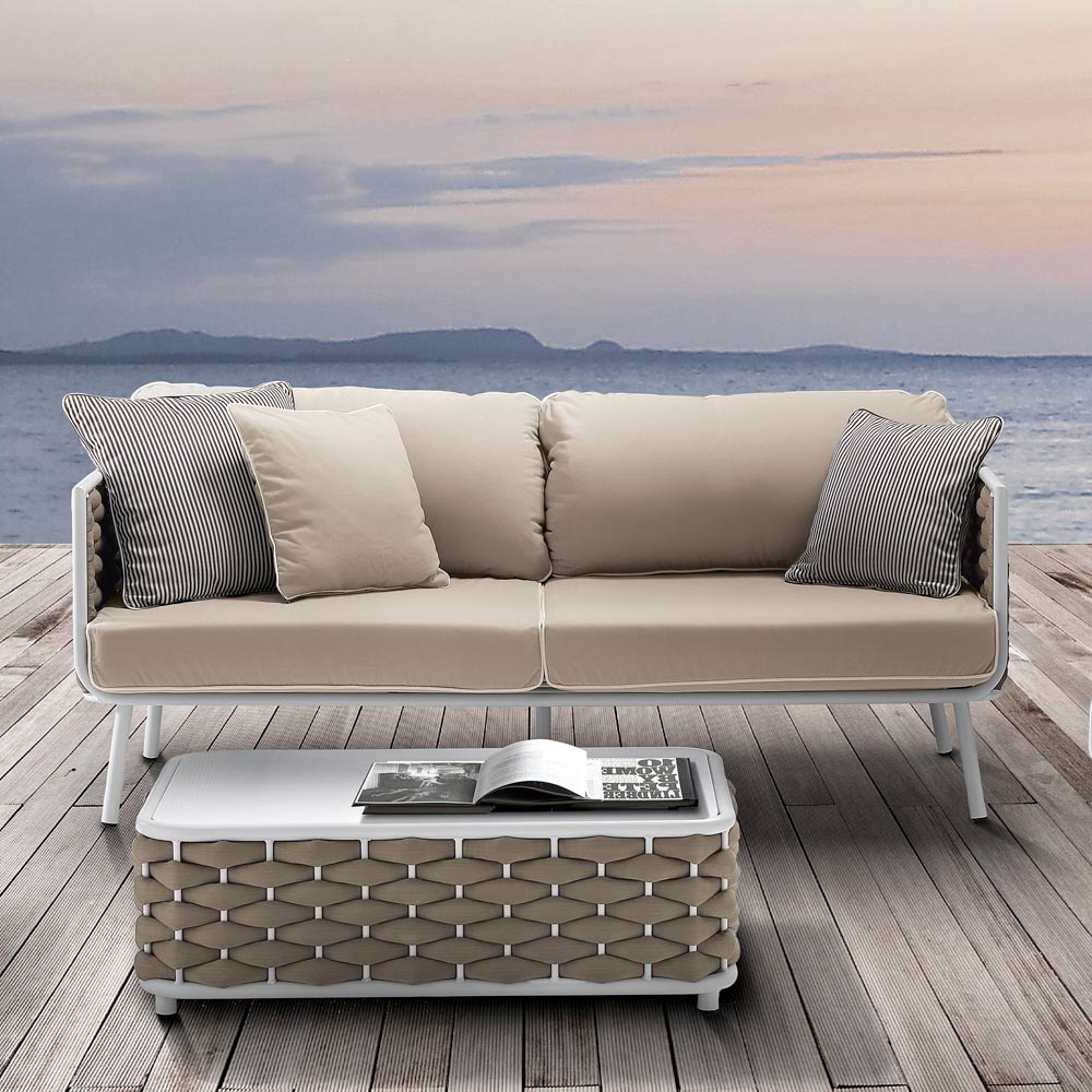 هيكل هذه الأريكة سهل الاستخدام ومتين ، مع الحفاظ على تصميم أنيق. تصميمها العصري يمنحها طابعًا قويًا، مما يجعلها مثالية لتأثيث المساحات الخارجية، سواءً في البيئات الخاصة أو الخاصة.
