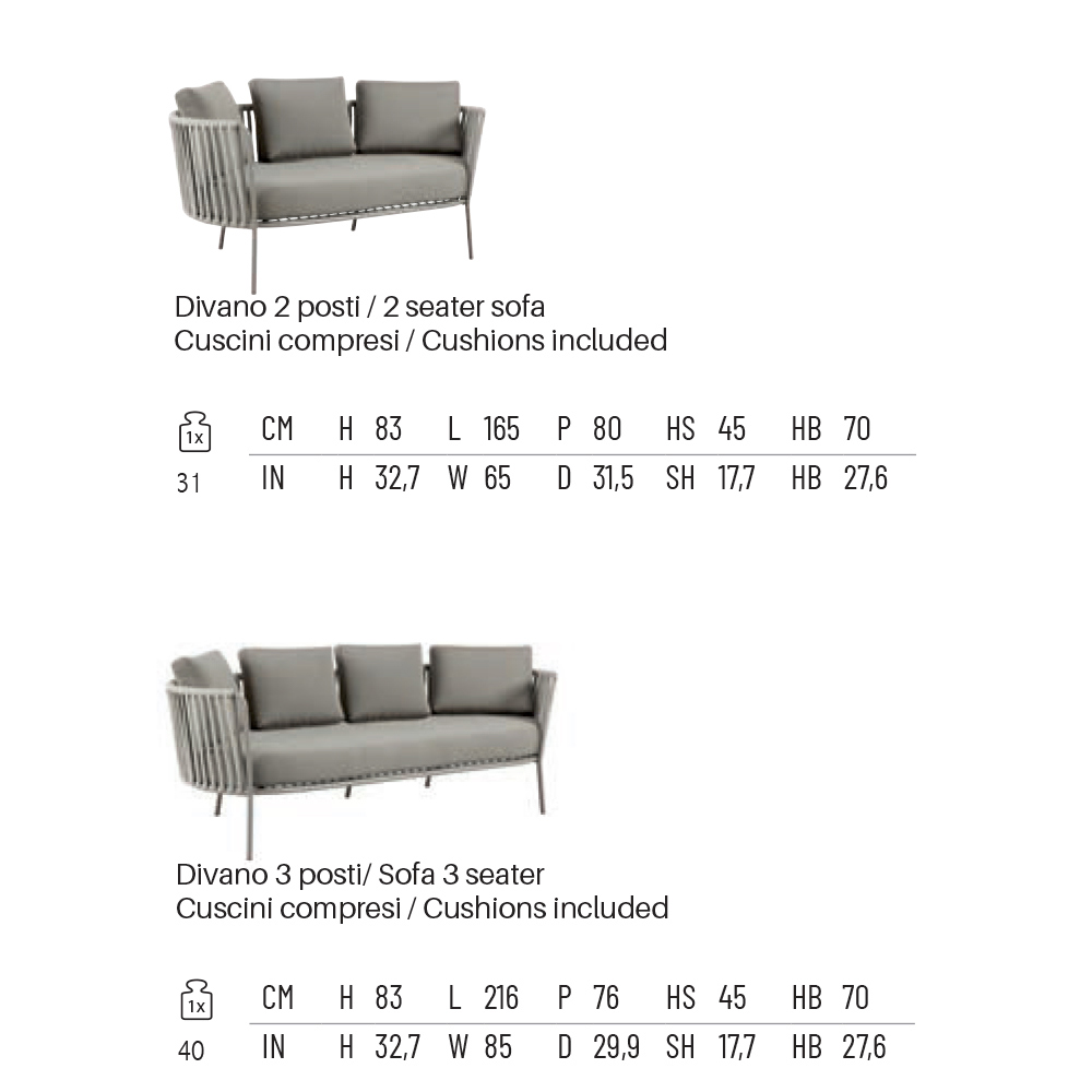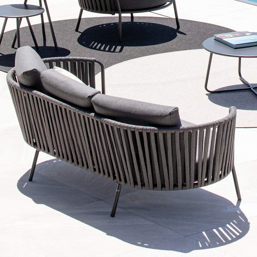 أريكة خارجية من الفولاذ والحبل بأحجام مختلفة مع وسائد صنع في إيطاليا.